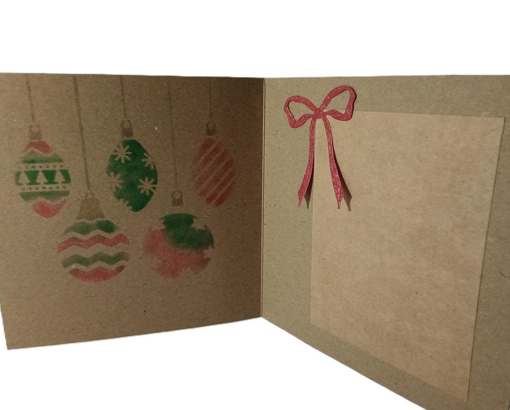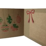 Impression intérieure boules de Noël fait main à l'encre et nœud papier rouge texturé.