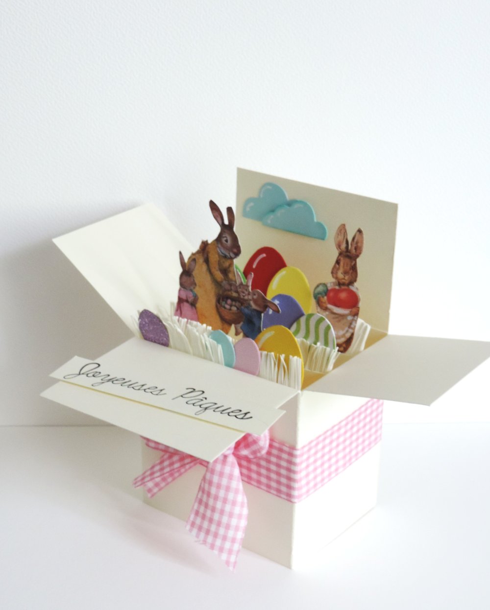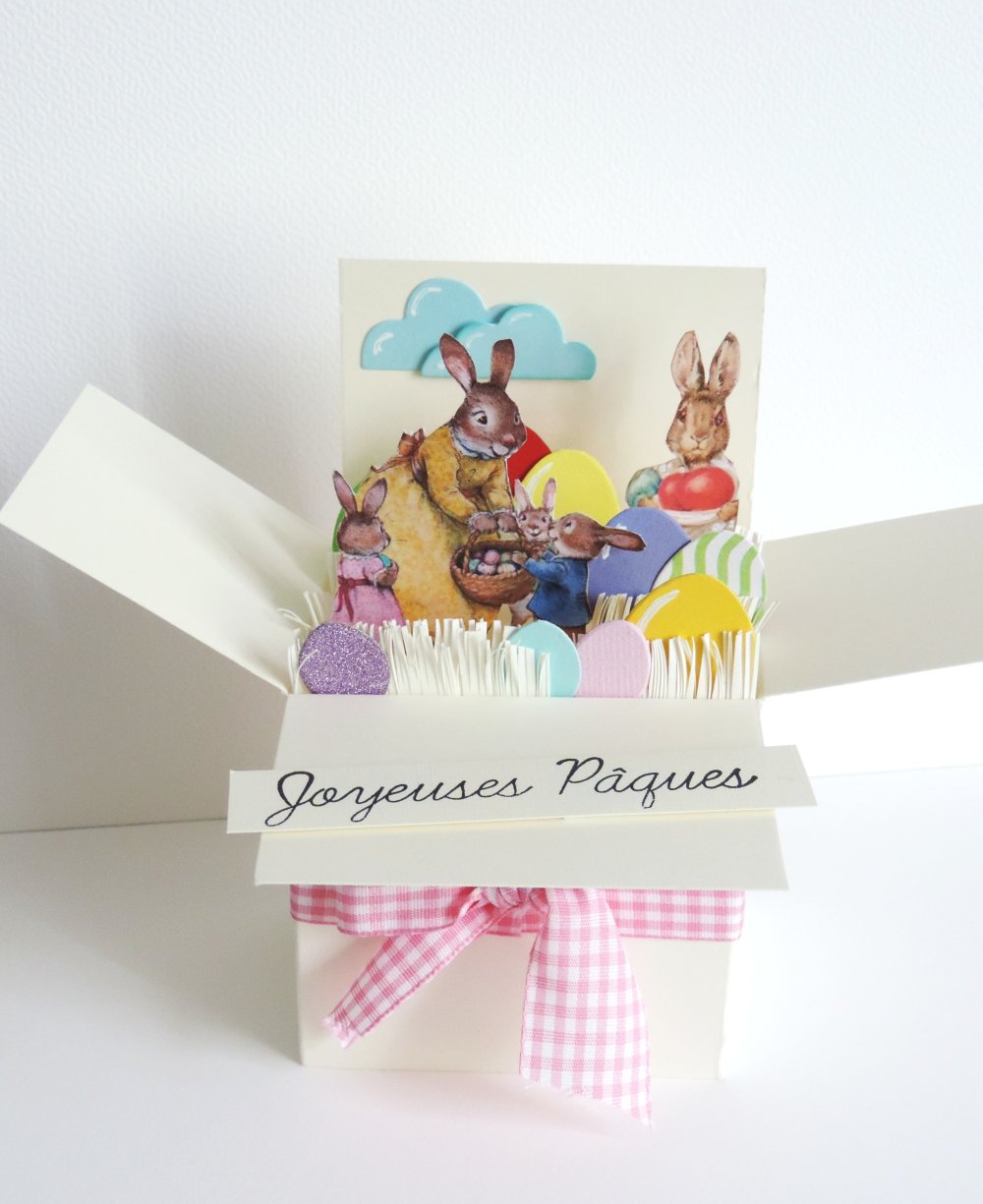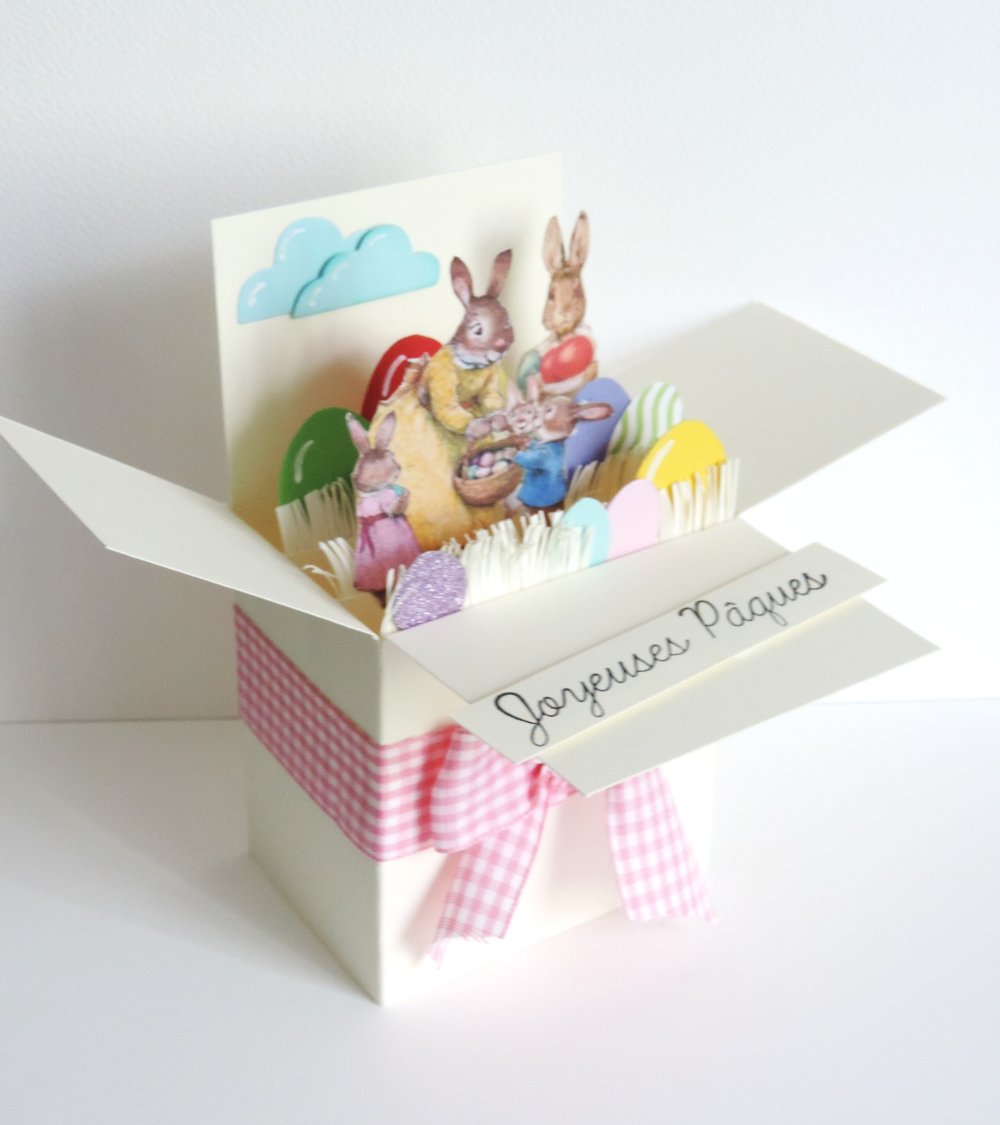 Carte de Pâques de forme boîte popup dépliable.