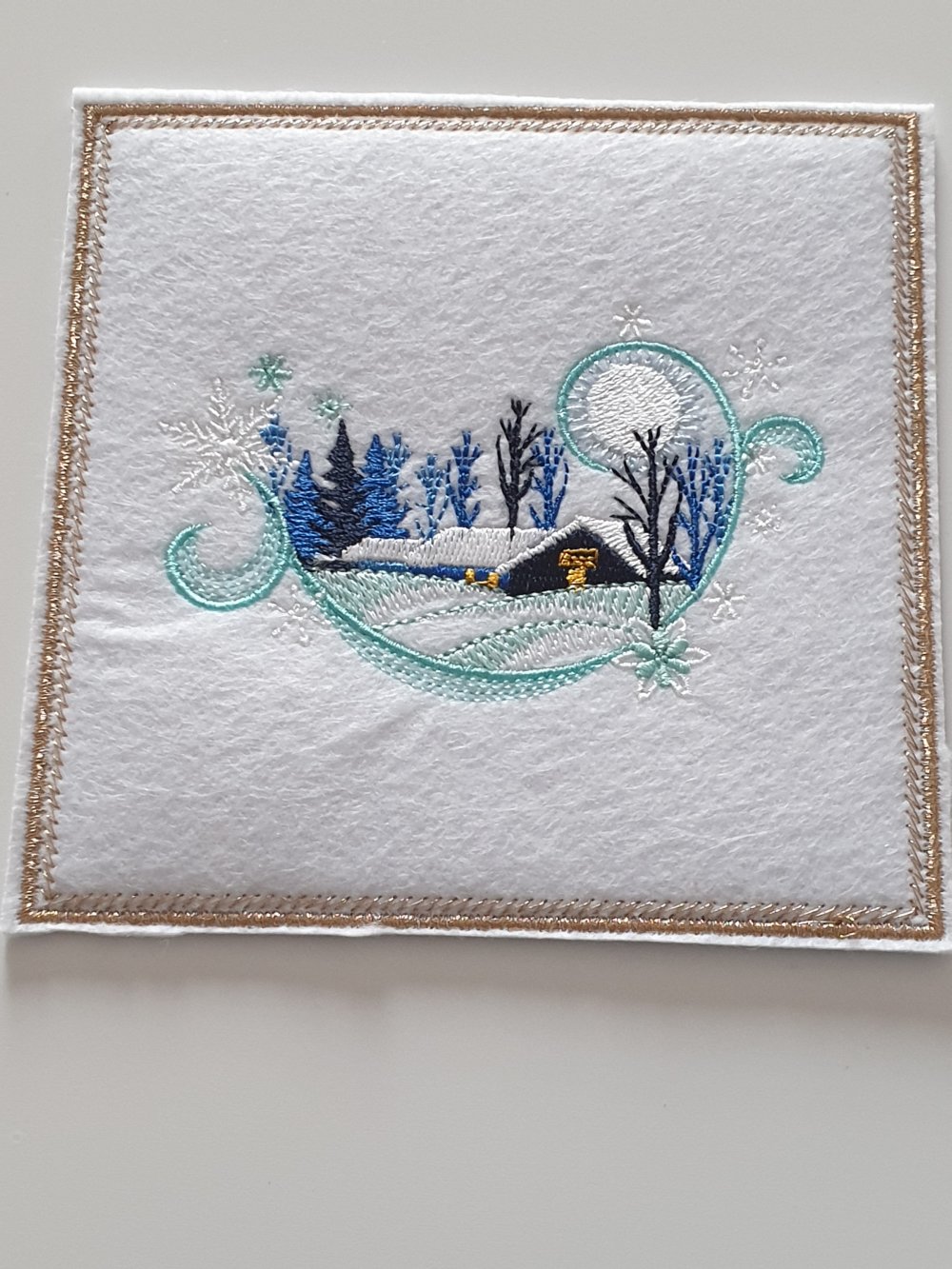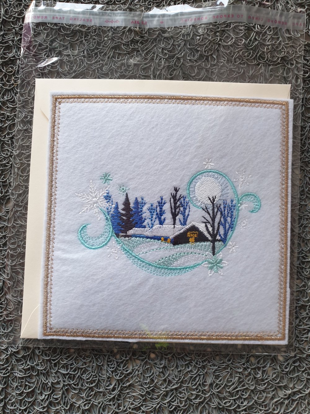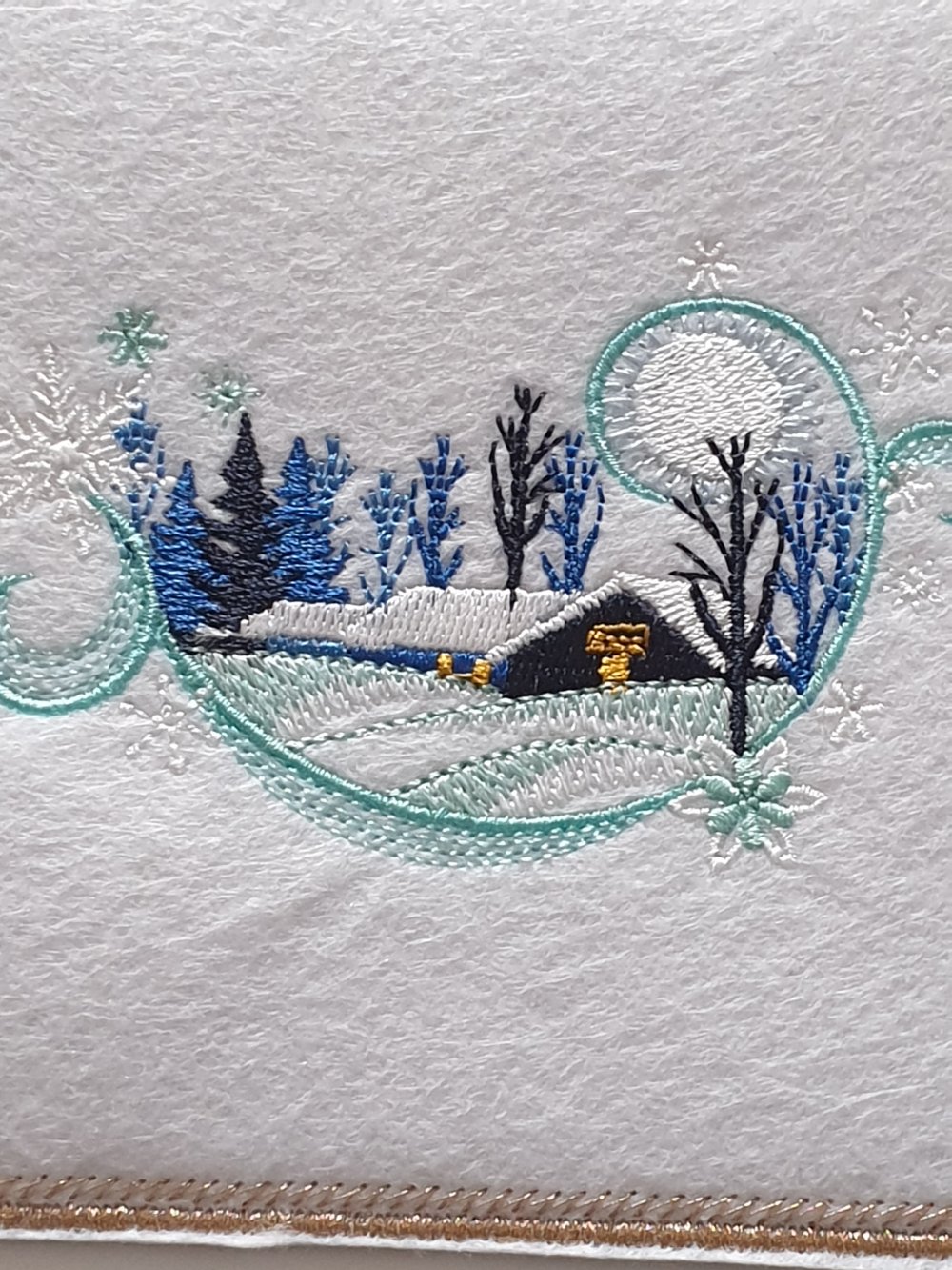 Carte de vœux en feutrine brodée – Modèle “Le chalet”