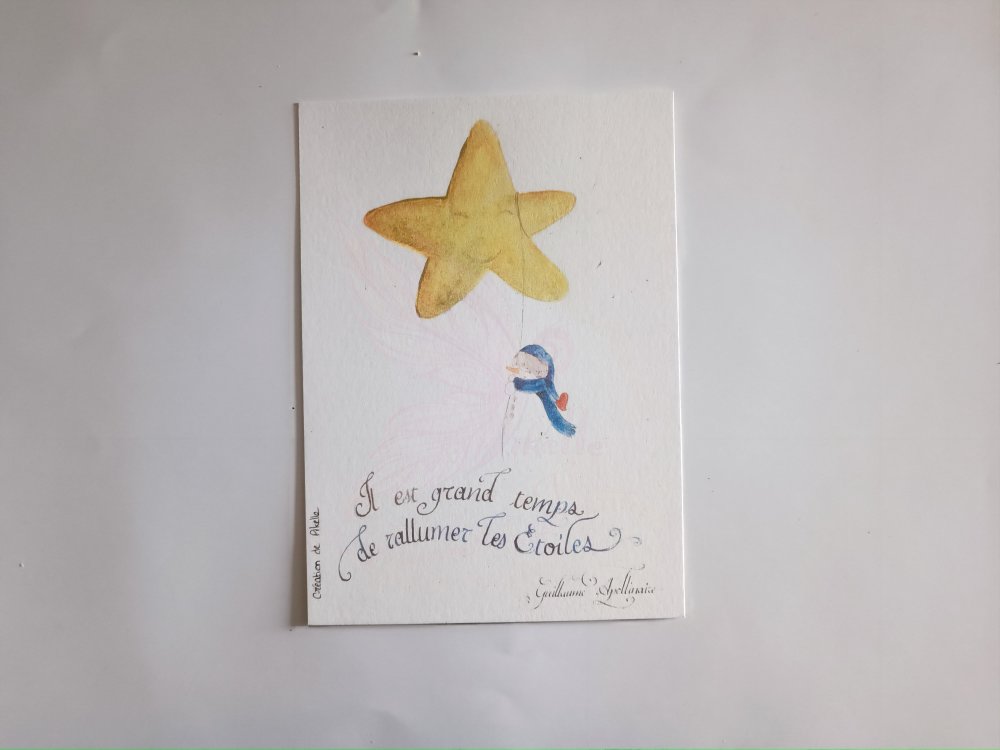 Carte cication d'apollinaire dorée à la plume d'oie