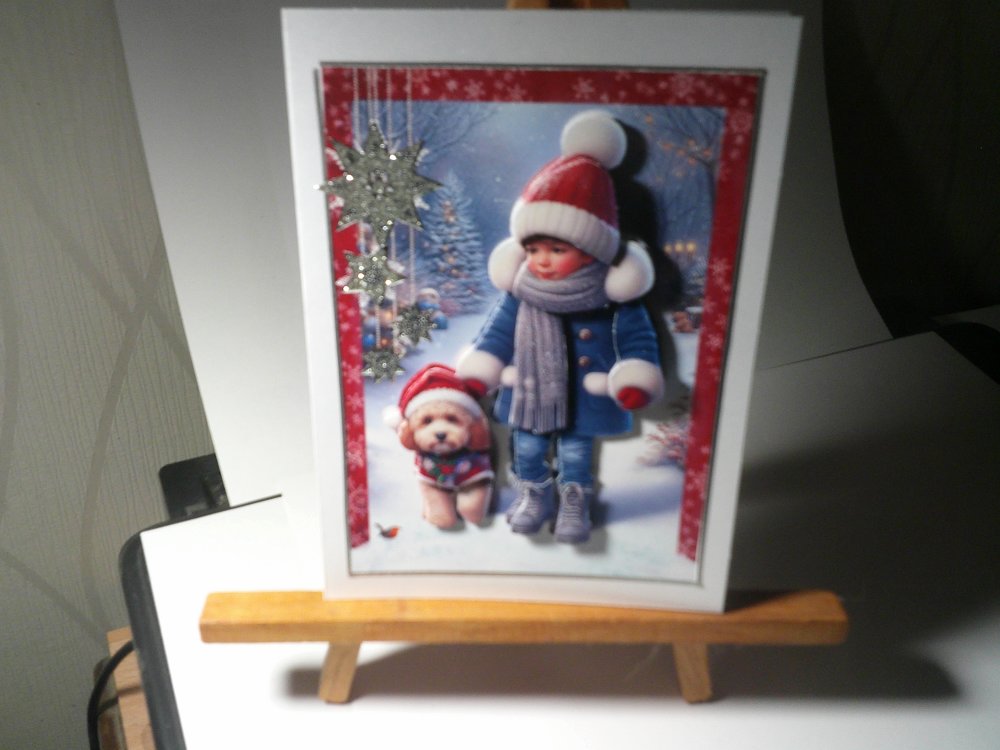 carte en 3d, enfants en hiver (noel), double, faite main, modèle unique