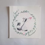 Je travaille principalement des matières naturelles (aquarelle végétale, papiers recyclé ou fait main, plumes naturelles,…).