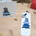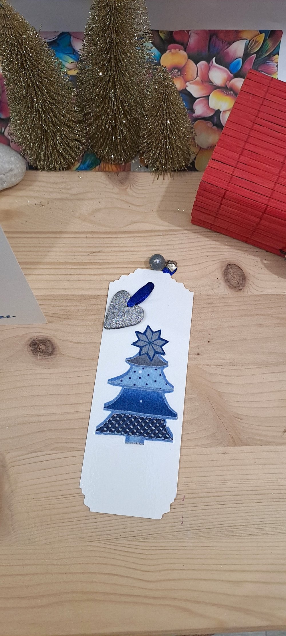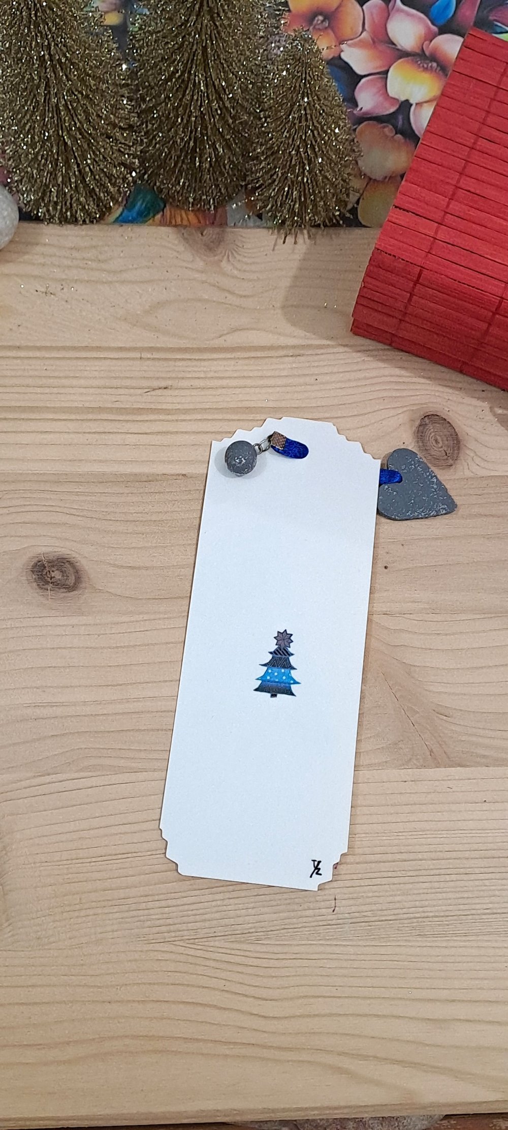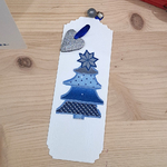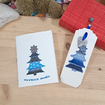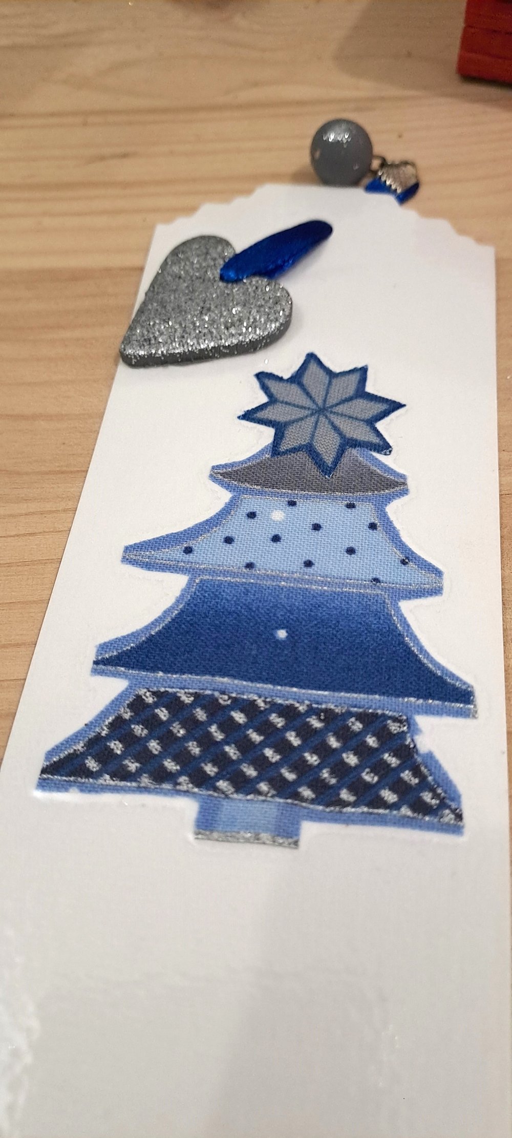 Marque page avec sapin de tissus incrusté puis plastifier à chaud