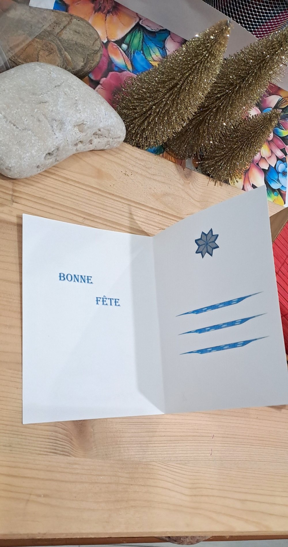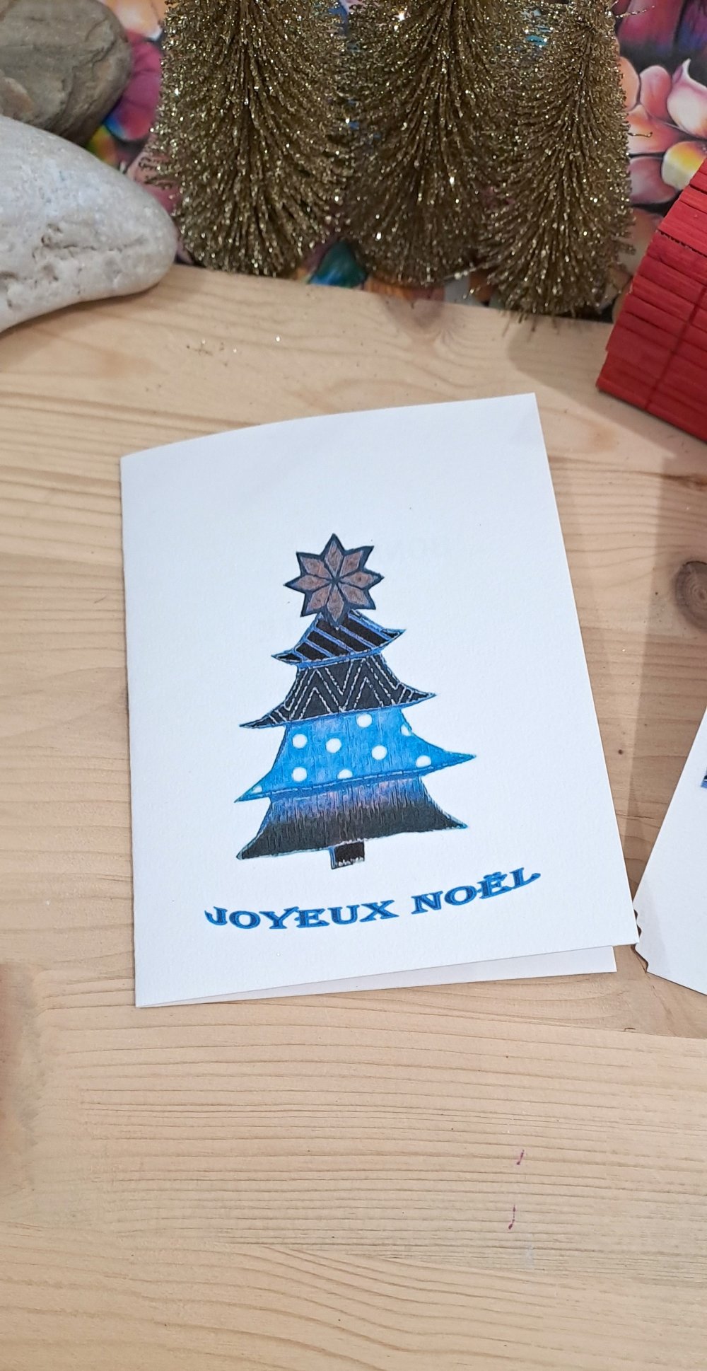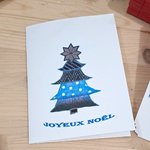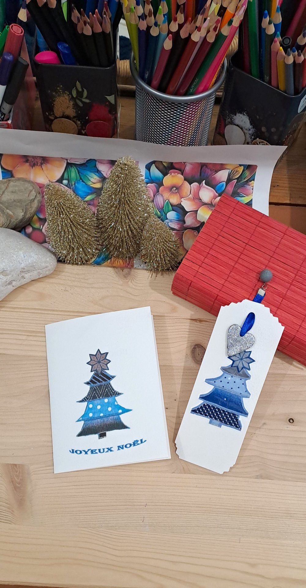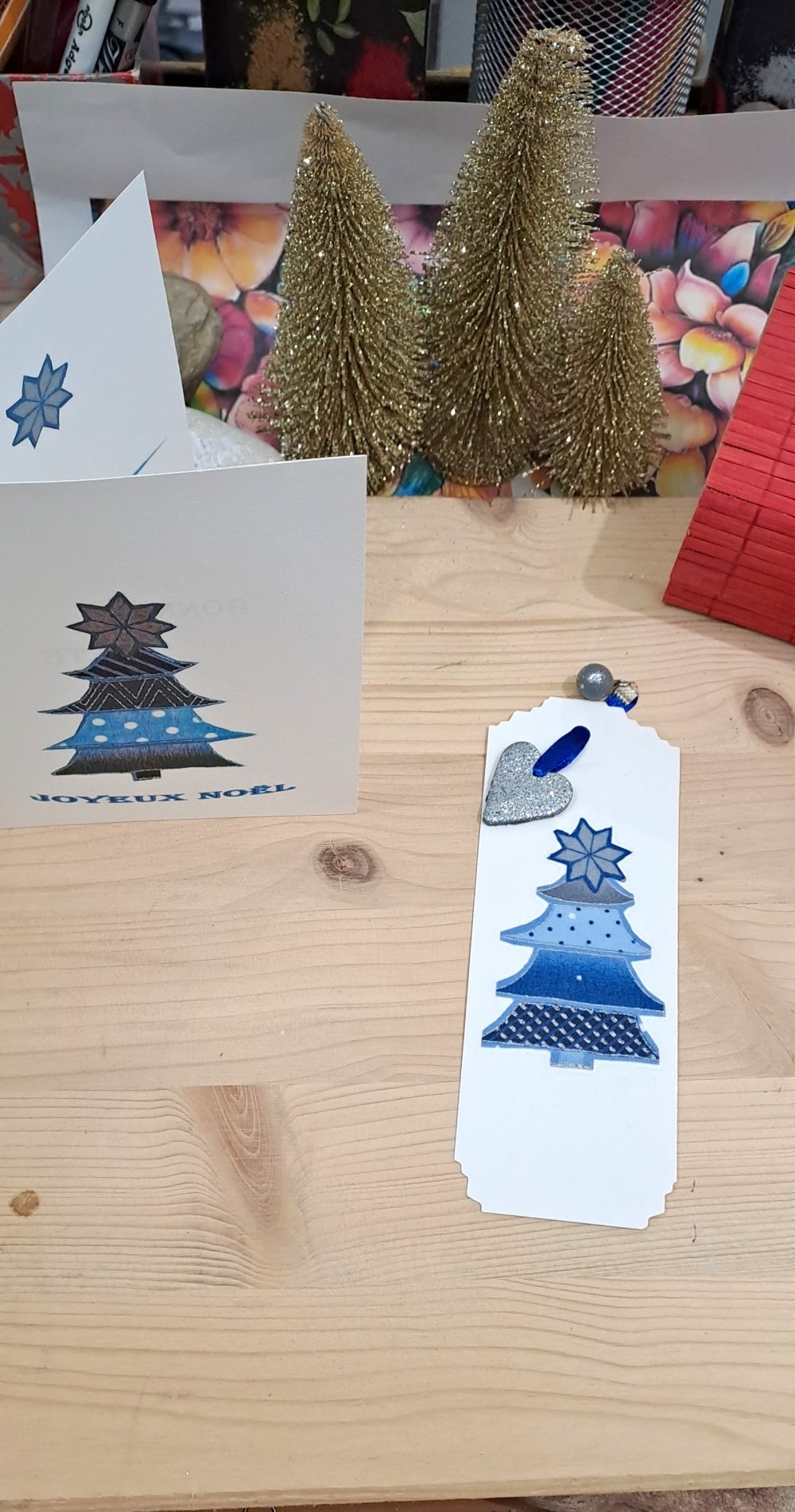 Marque page avec sapin de tissus incrusté puis plastifier à chaud