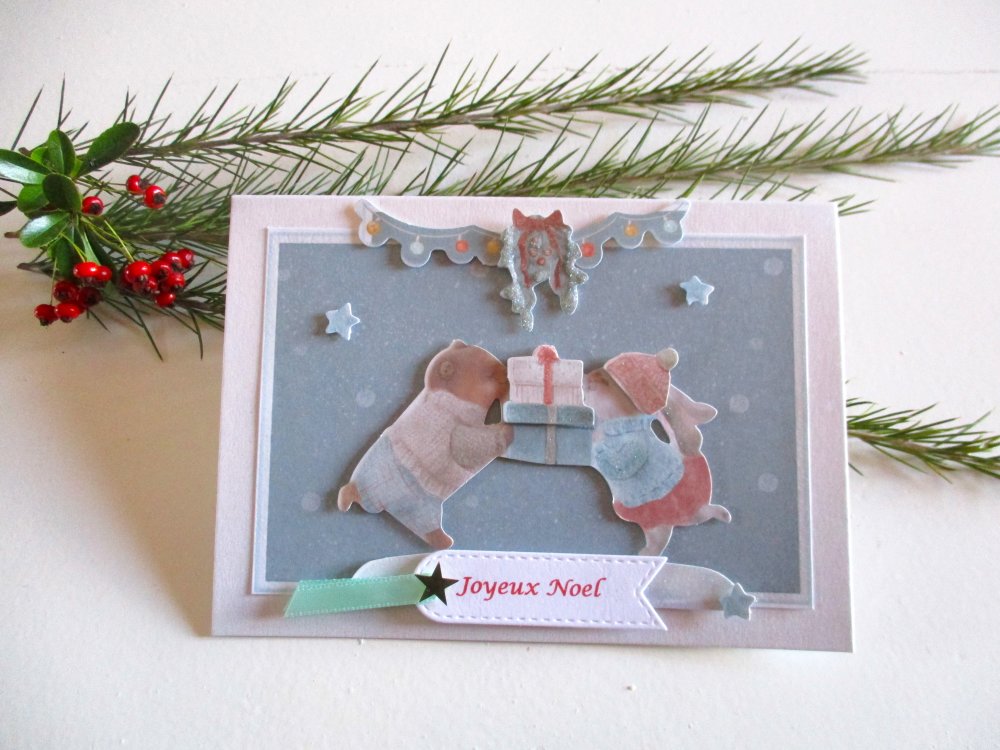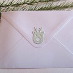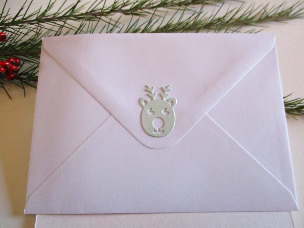 Décor renne et guirlande au dos de la carte et de l'enveloppe.