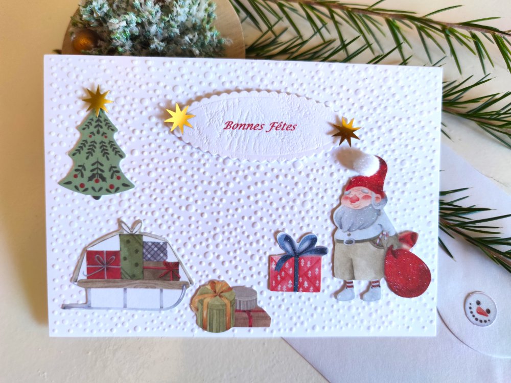 Carte Joyeux Noel, faite main avec enveloppe assortie. Père Noel