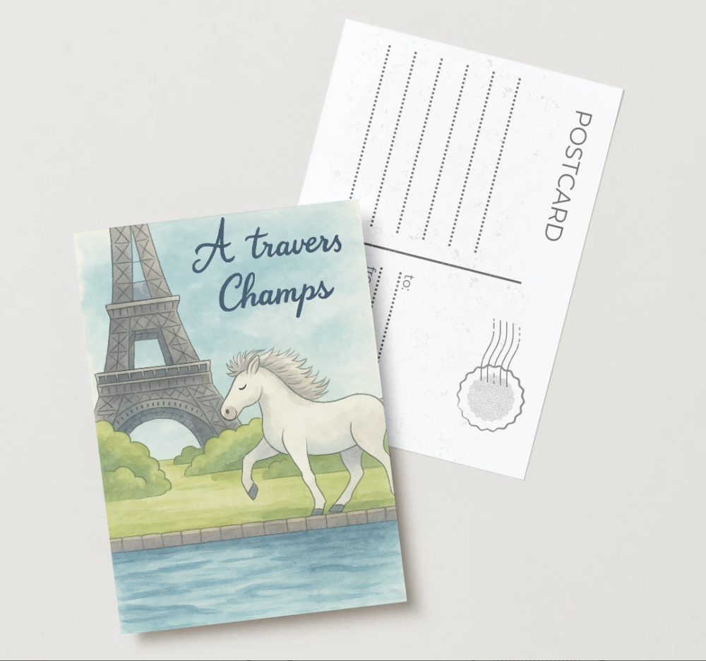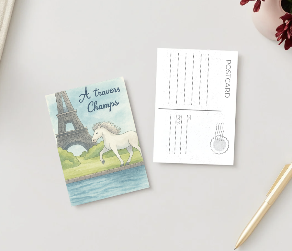 Carte postale A5, dessinée, représentant Paris