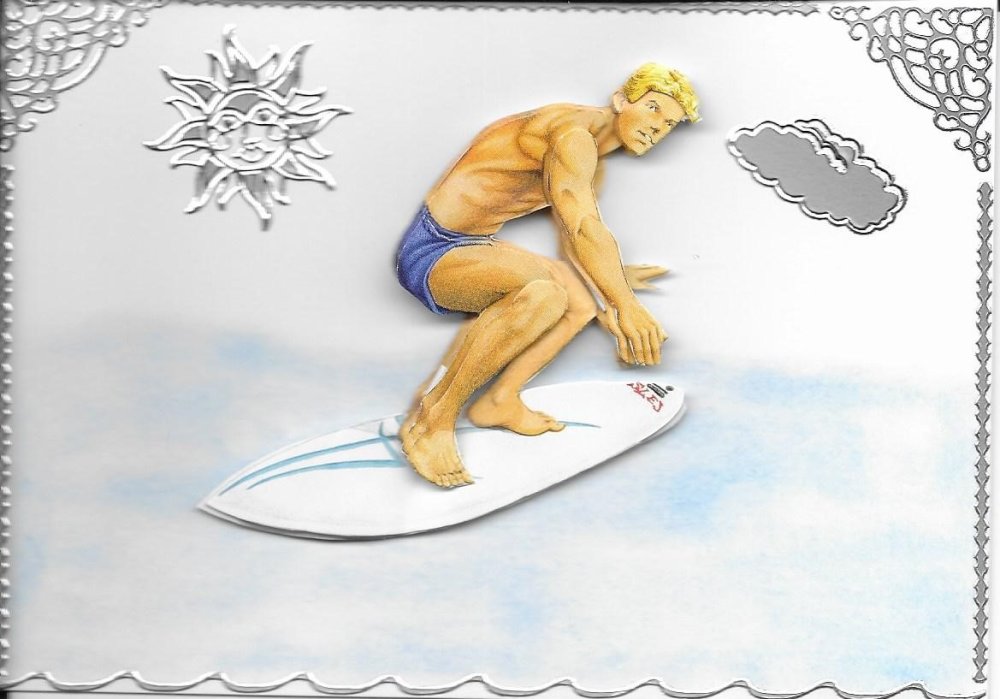 Carte sports, double, en 3d, faite main, modèle unique, format A6, natation, surf