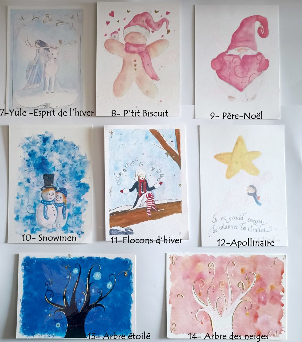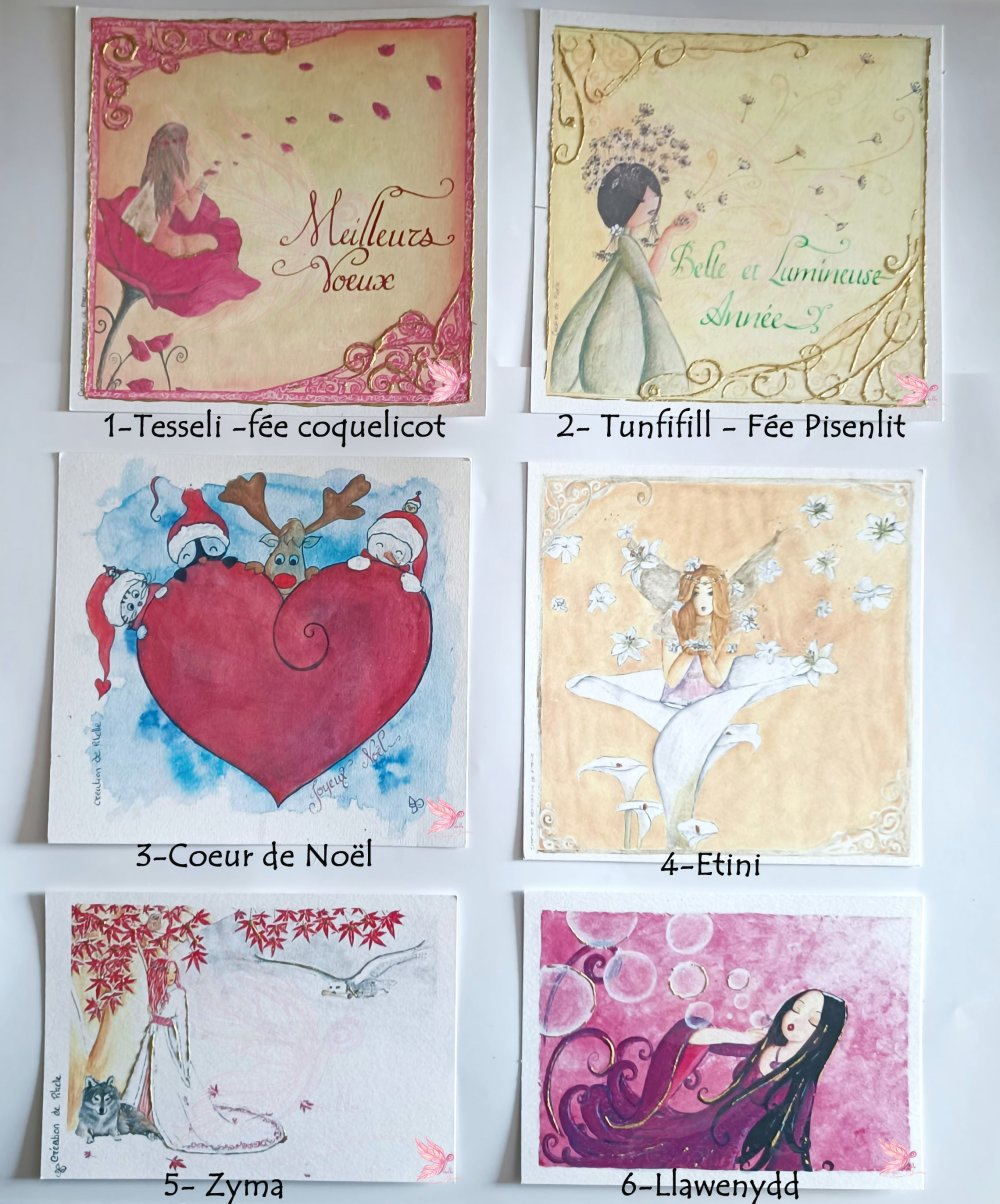 Vous pouvez choisir les 5 cartes de voeux parmi les modèles proposés ci-dessus.(1 modèle de chaque ou plusieurs du même modèle)
