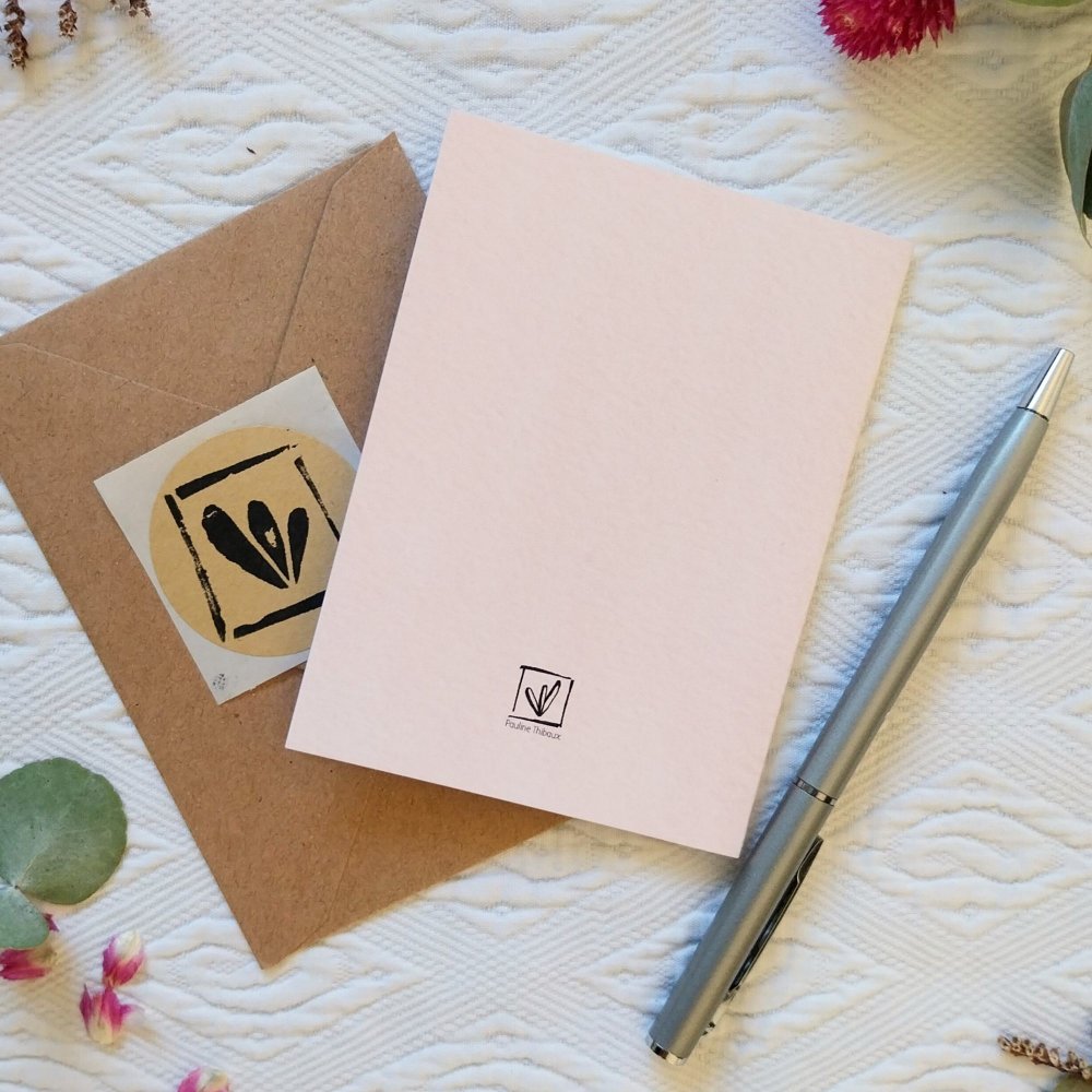 Chaque mini-carte est vendue avec son enveloppe et un sticker pour la fermer. Elles sont emballées à l'aide d'une ficelle en jute, afin d'éviter l'utilisation de plastique.