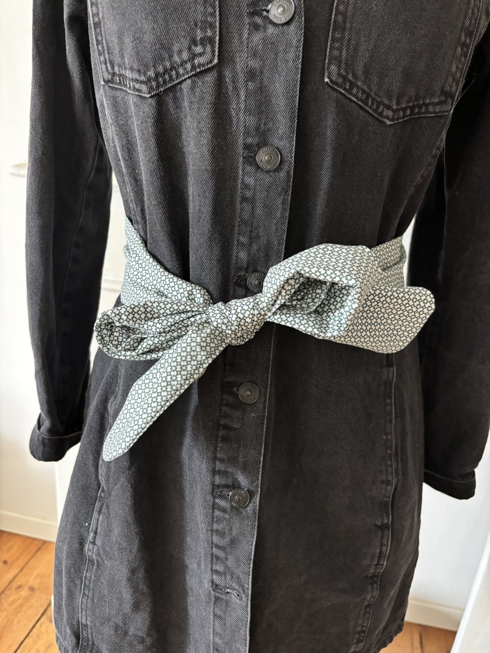 Ceinture déclinable à nouer autour de la taille, sur un pantalon, une robe etc... mais aussi en accessoire sac, dans les cheveux.
