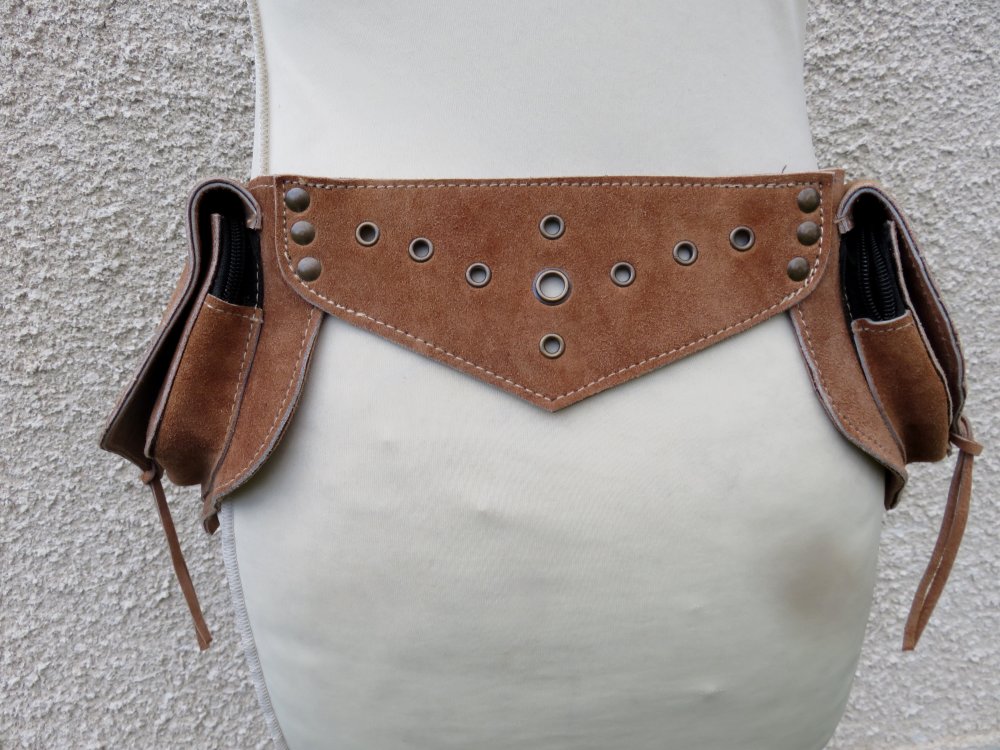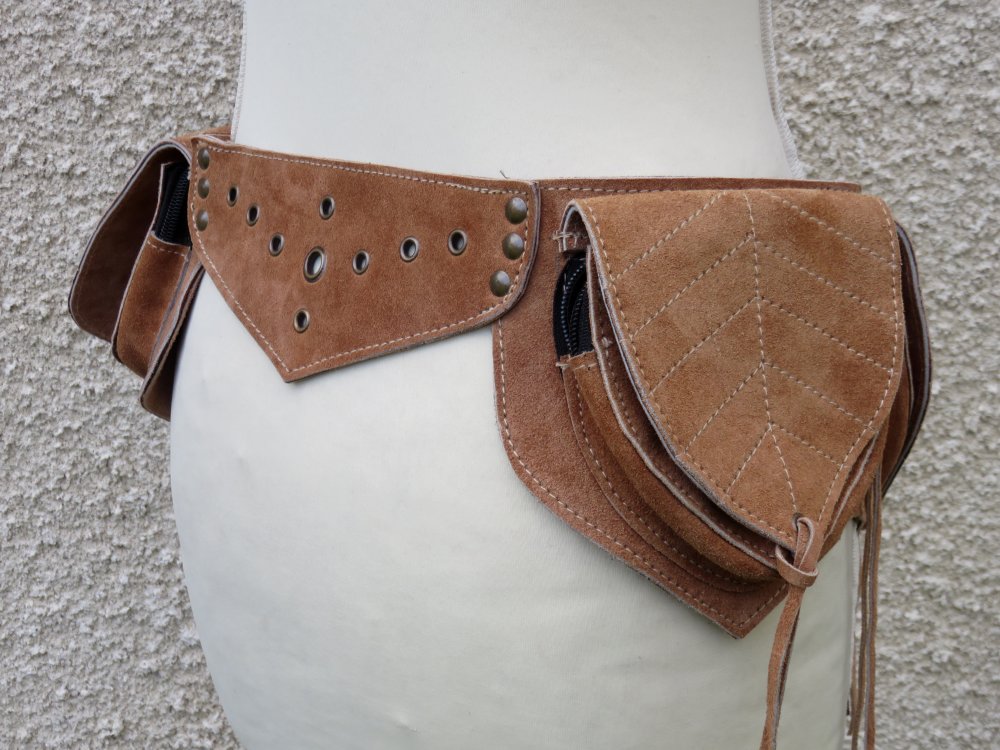 Ceinture Poche Multipoche Voyage Cuir et Coton parfaite pour les festivals ou en voyage.