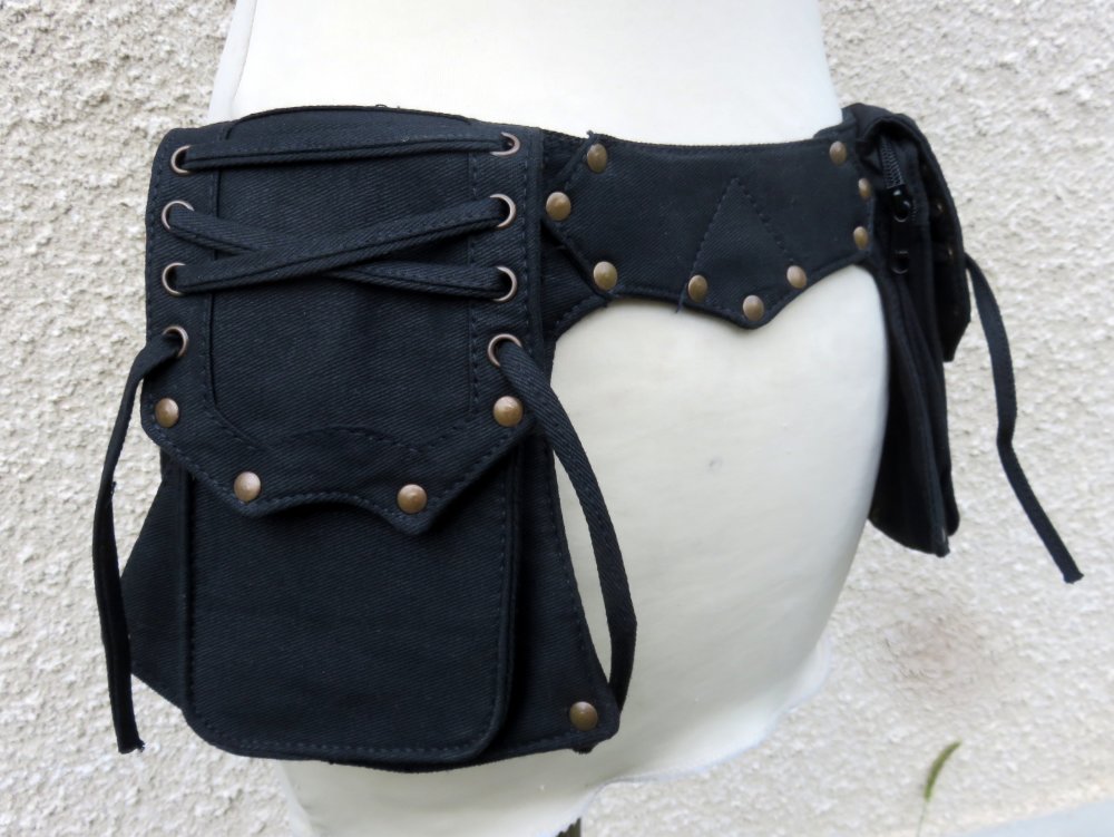Ceinture Poche Coton Anvil Noire taille S - XL (84 - 110cm)