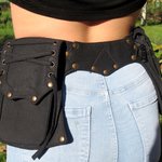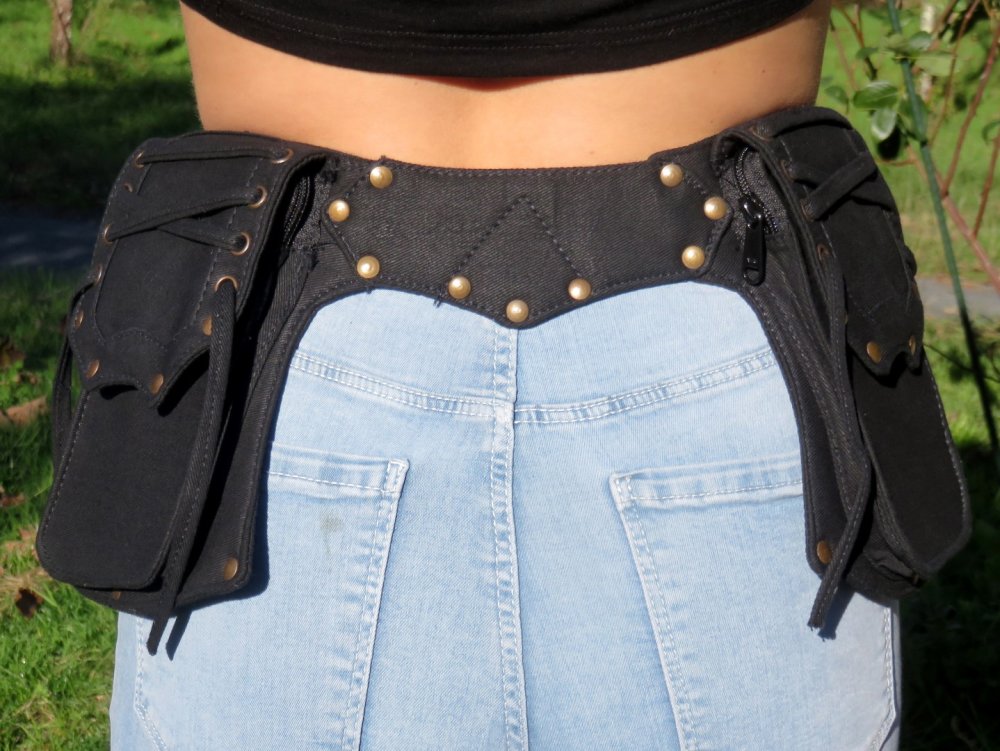 Ceinture Poche Multipoche Voyage Cuir et Coton parfaite pour les festivals ou en voyage.