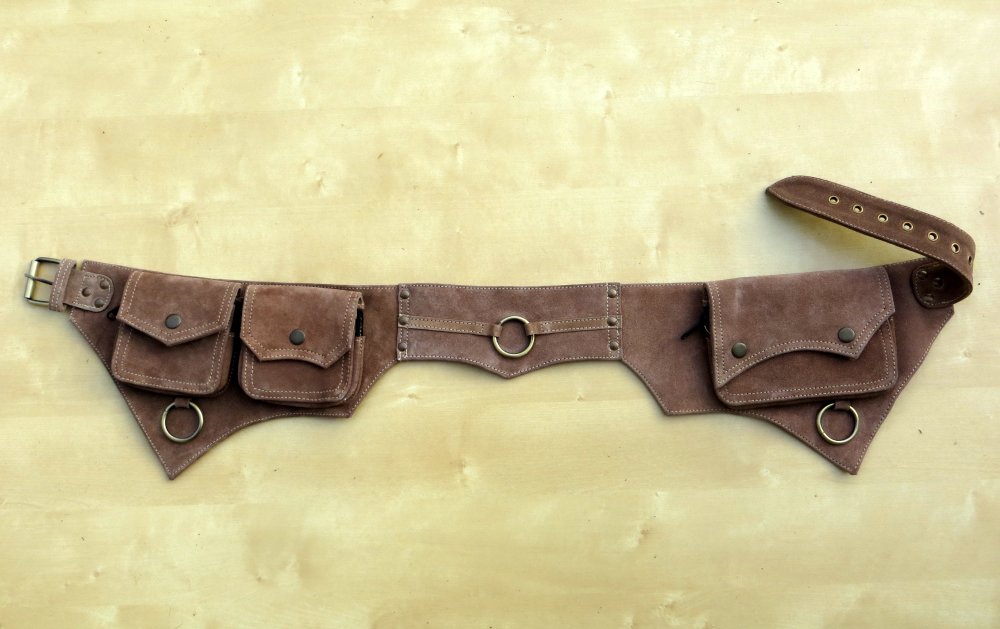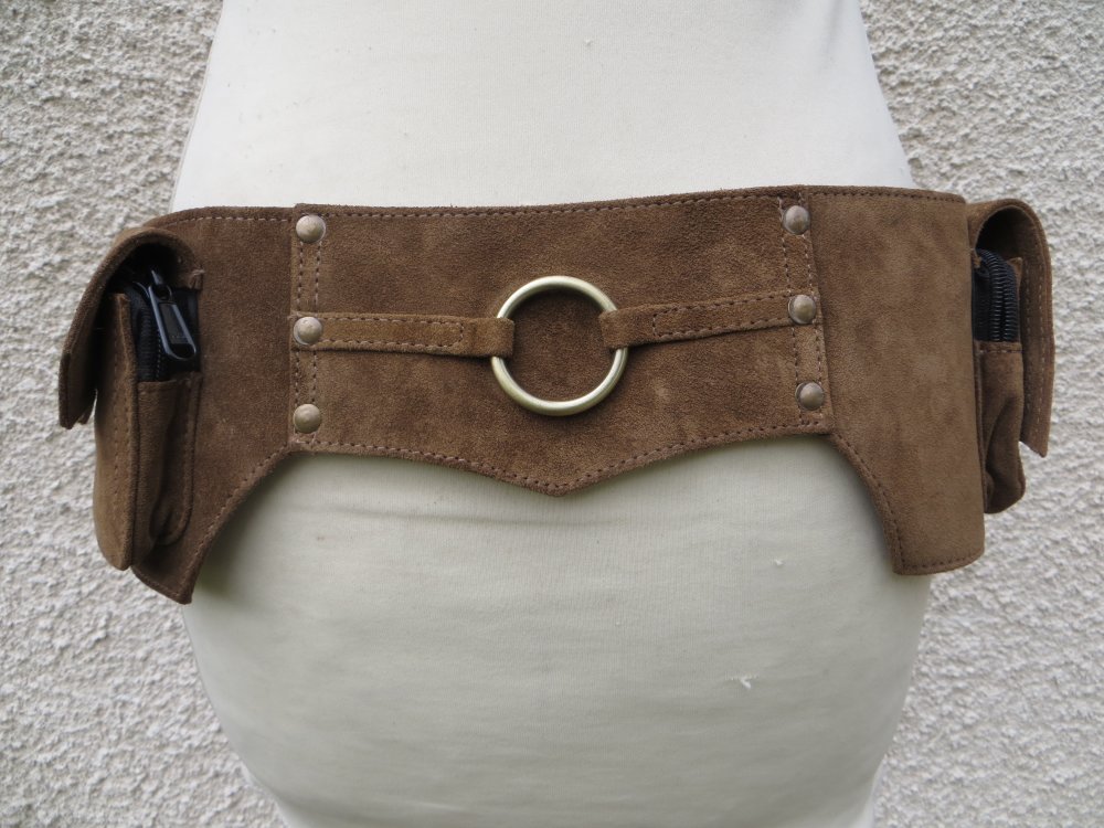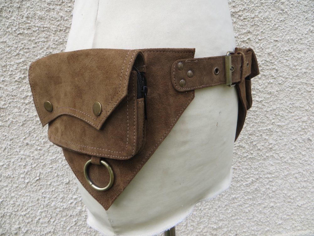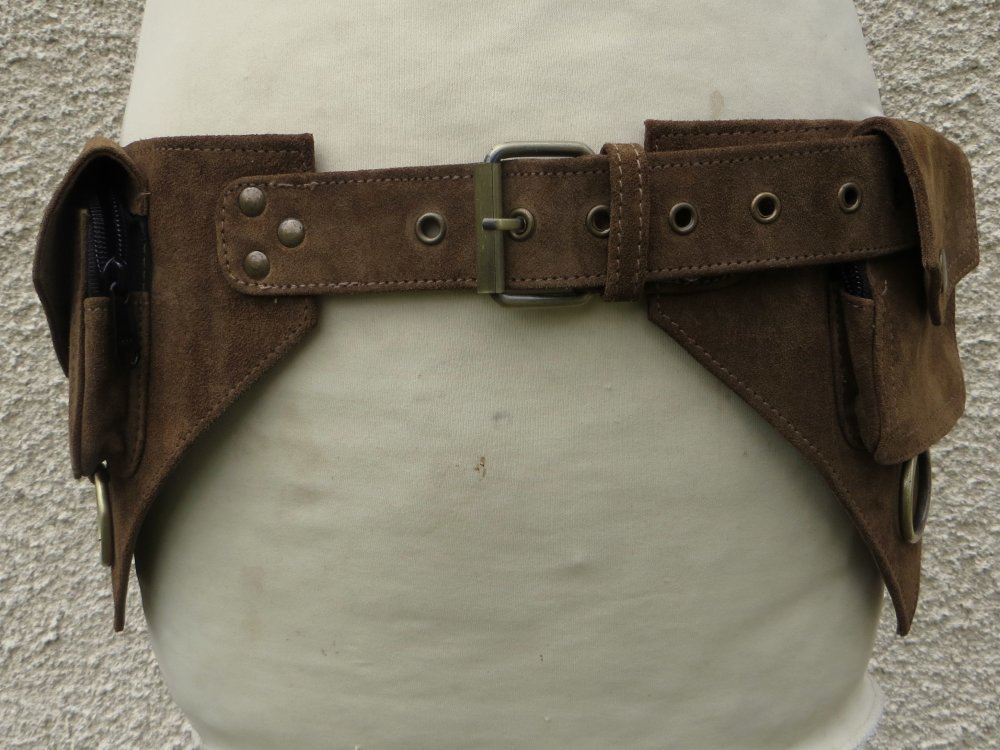 Ceinture Poche Multipoche Voyage Cuir et Coton parfaite pour les festivals ou en voyage.