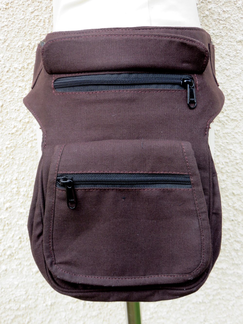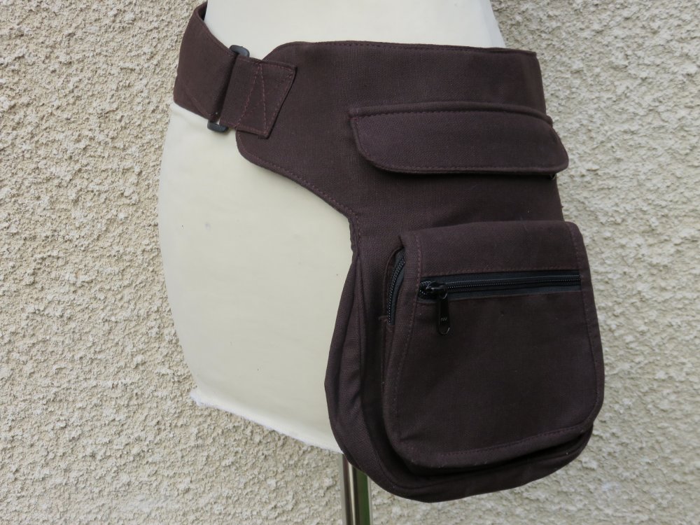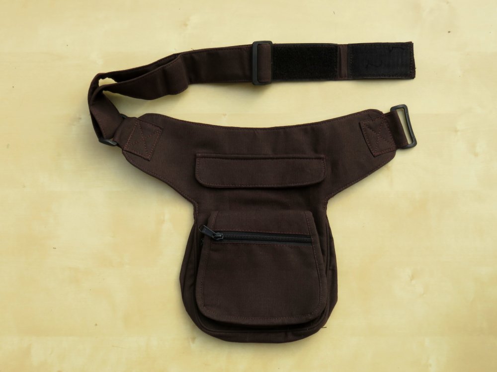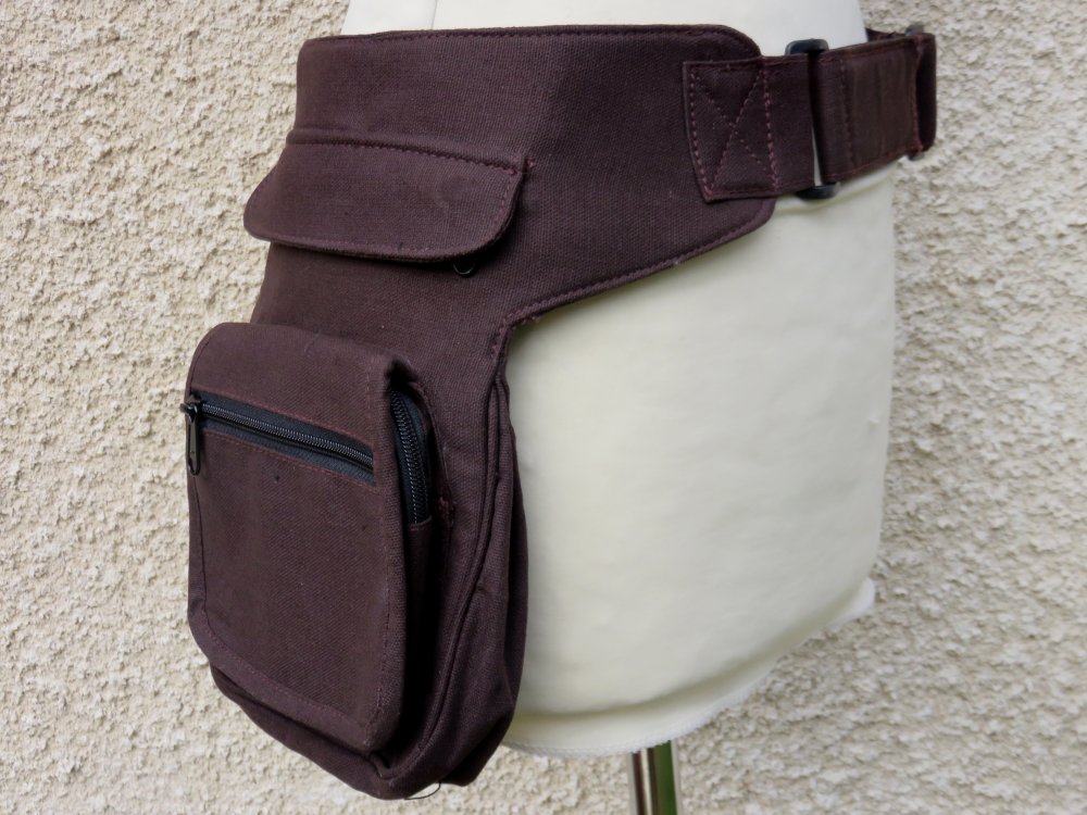 Ceinture Poche Multipoche Voyage Cuir et Coton parfaite pour les festivals ou en voyage.