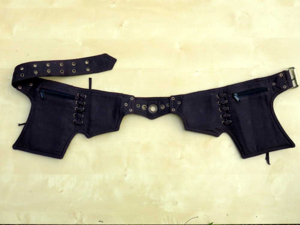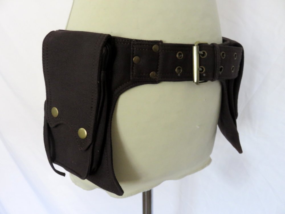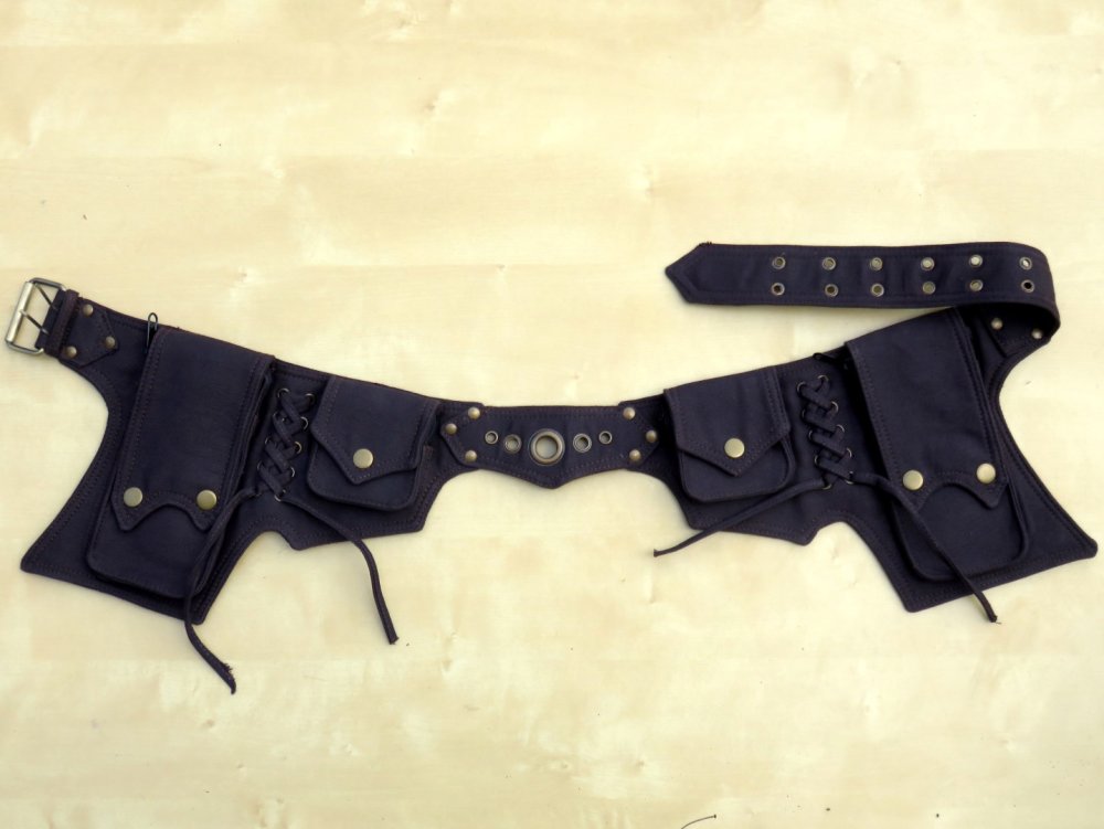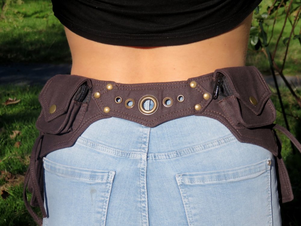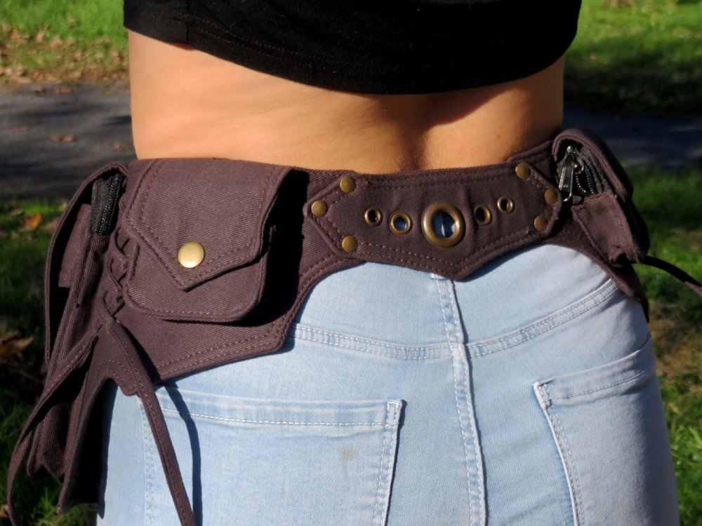 Ceinture Poche Multipoche Voyage Cuir et Coton parfaite pour les festivals ou en voyage.