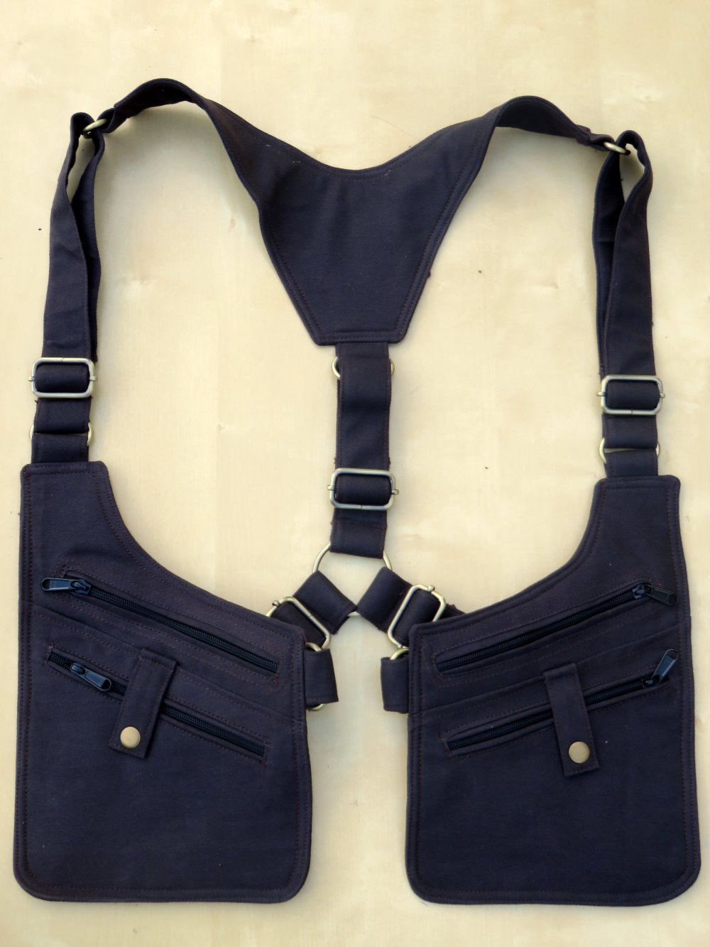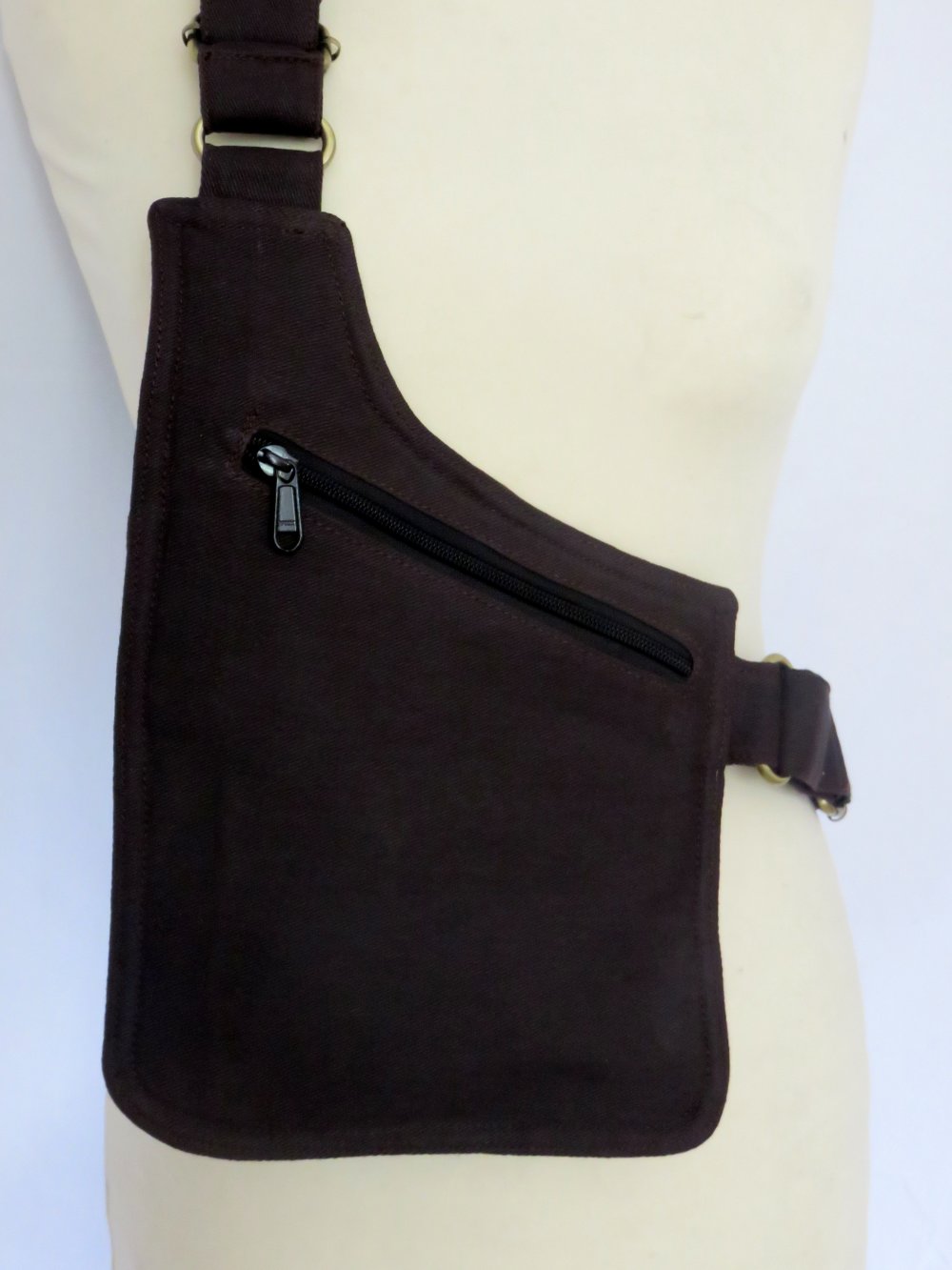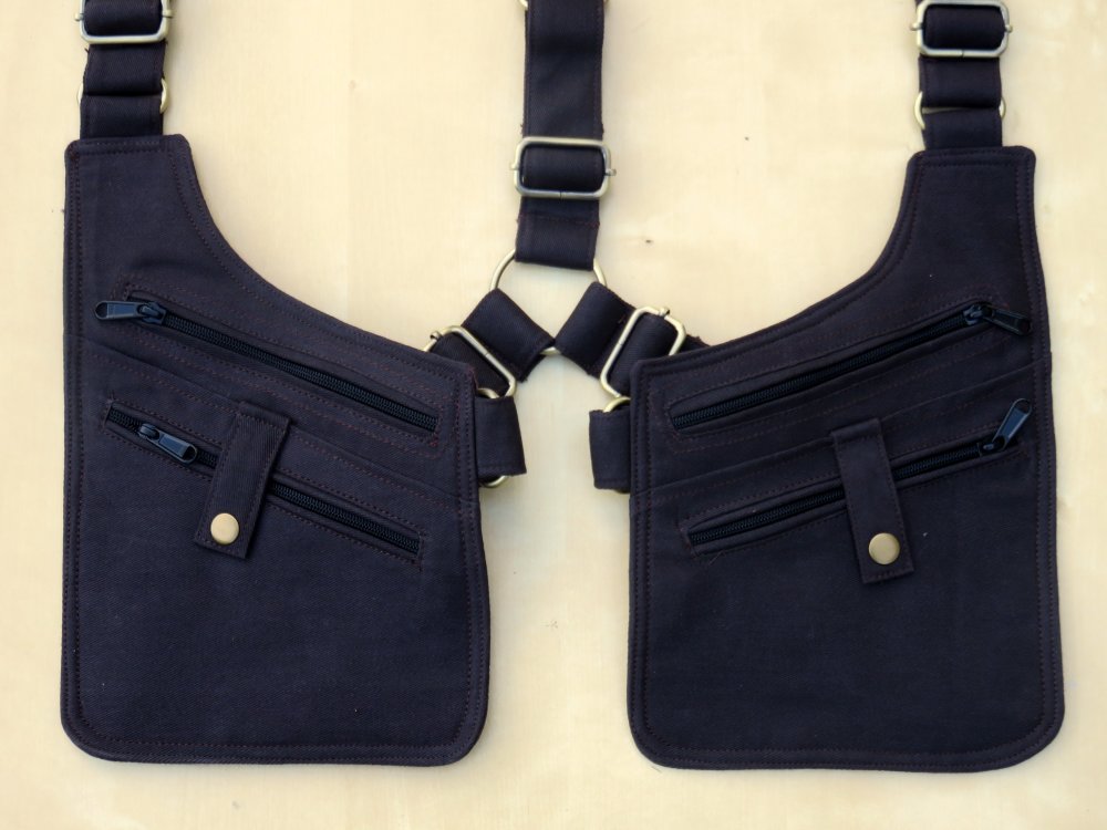 Ceinture Poche Multipoche Voyage Cuir et Coton parfaite pour les festivals ou en voyage.