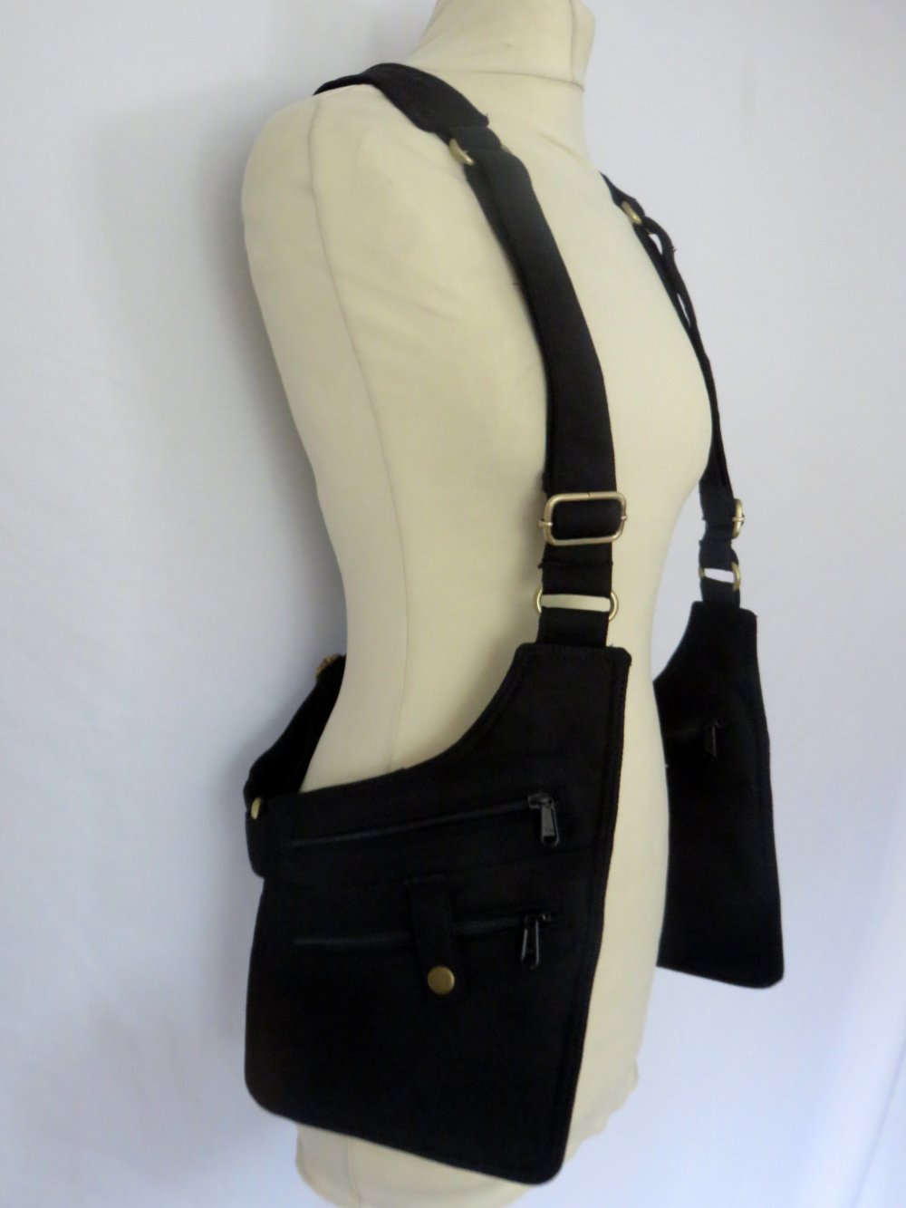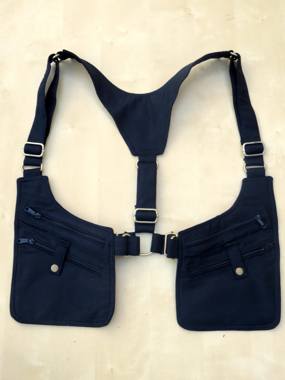 Ceinture Poche Multipoche Voyage Cuir et Coton parfaite pour les festivals ou en voyage.