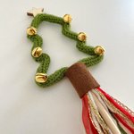 Réalisée à la main, elle mêle la douceur du tricotin, une bande de feutrine et de jolis fils scintillants pour un rendu poétique et lumineux.