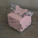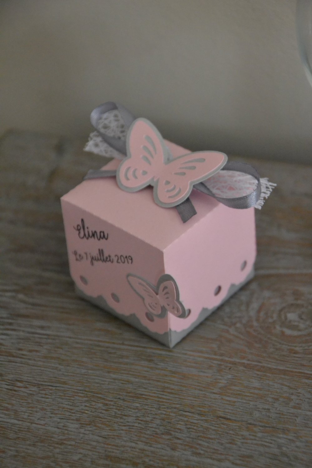 boite a dragée en forme de carre ou cube avec des papillons avec son petit noeud et a personnaliser selon vos souhait pour baptême anniversaire communiom mariage de petit fille