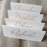 Chaque marque place est personnalisé avec le prénom de vos invités, imprimé avec soin sur un papier de qualité, au ton beige doux et intemporel.