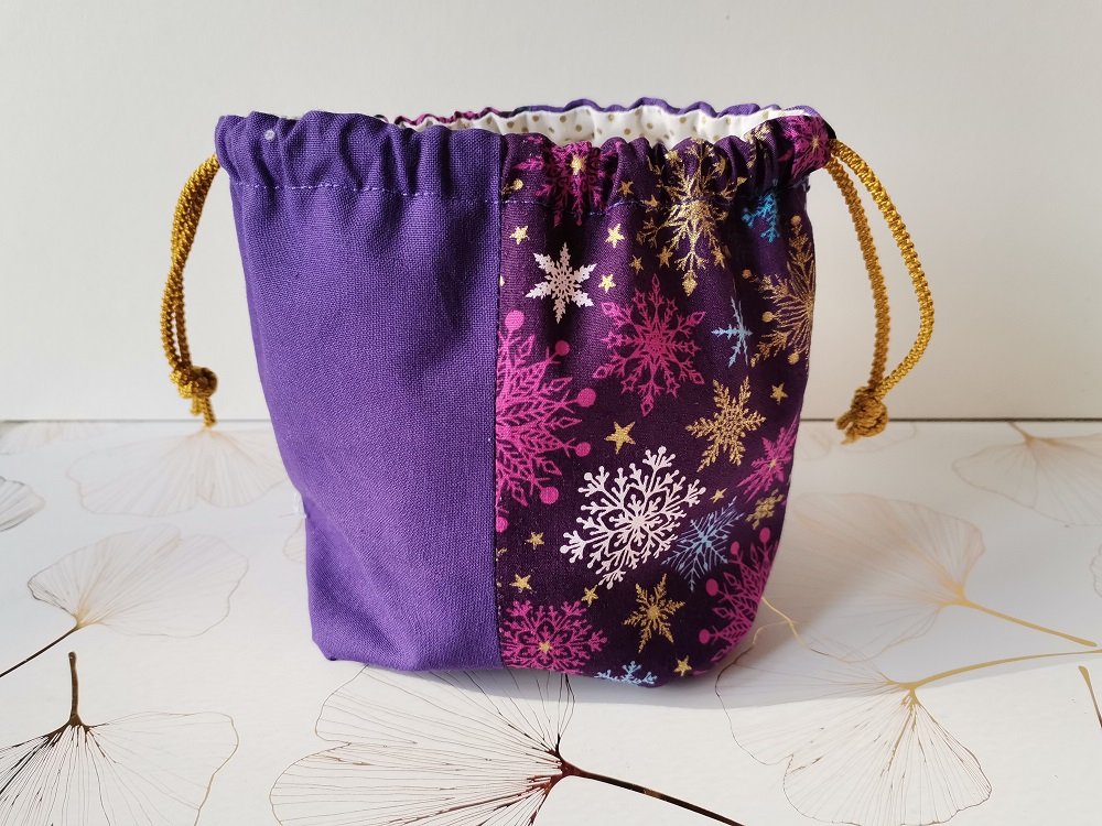 Petit sac pochon de noël à lien coulissant violet