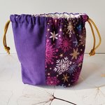 Petit sac pochon de noël à lien coulissant en tissus coton certifié Oeko-Tex de couleur violet uni et motif noël étoiles