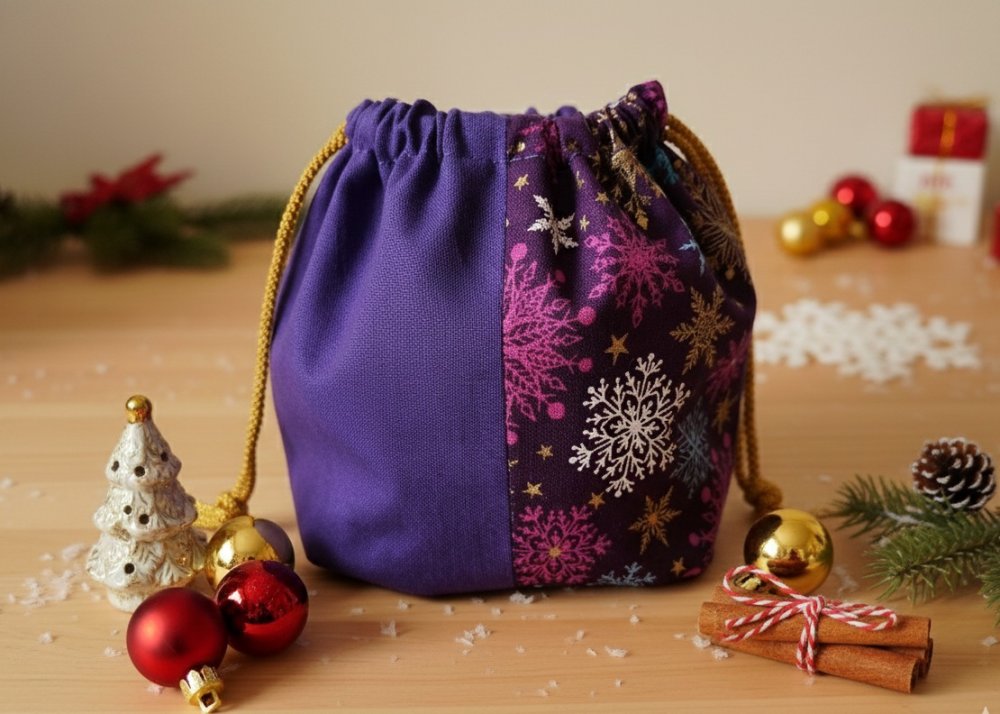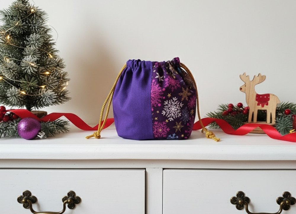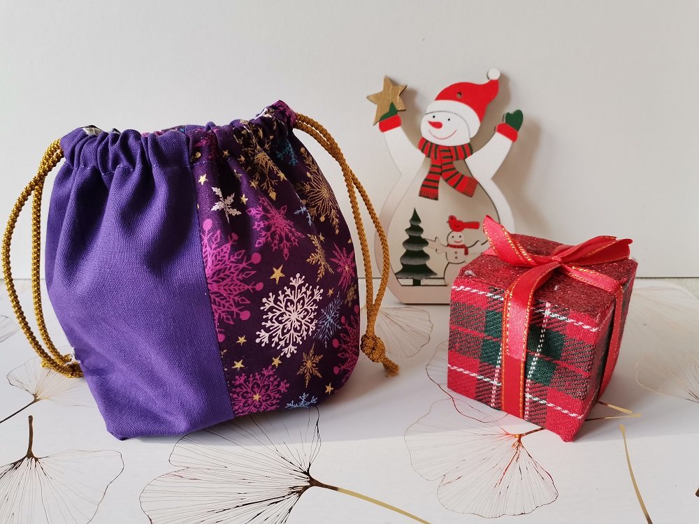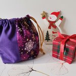 Petit sac pochon de noël à lien coulissant violet
