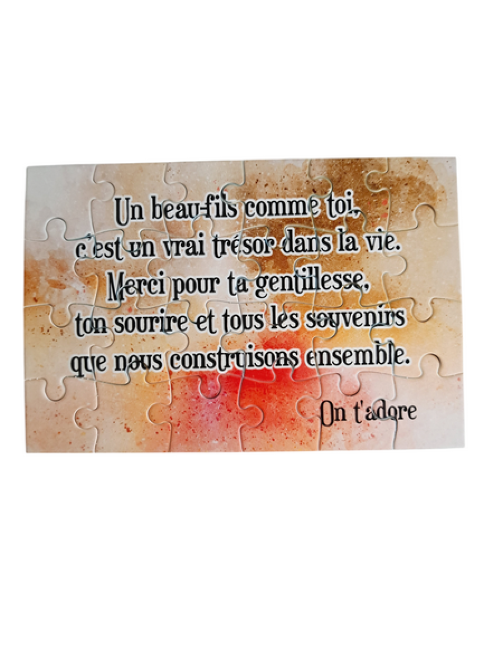 Puzzle "Beau-Beau" - 24 pièces avec pochon - Beau-fils- Surprise - Anniversaire - Noel - Cadeau beau-fils