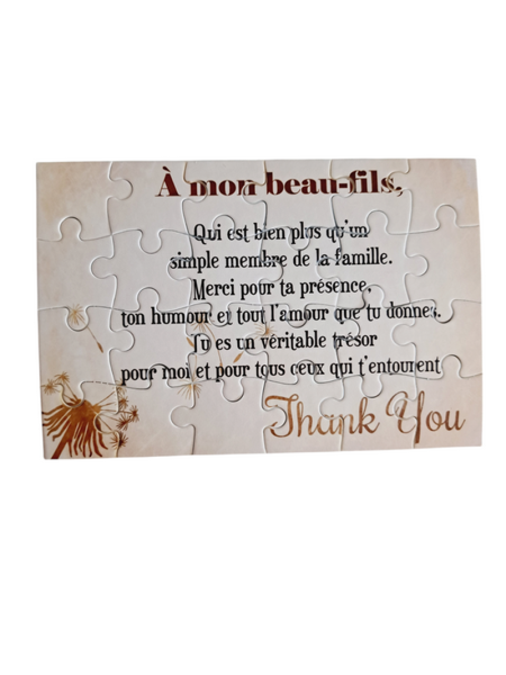 Puzzle "Beau-Beau" - 24 pièces avec pochon - Beau-fils- Surprise - Anniversaire - Noel - Cadeau beau-fils