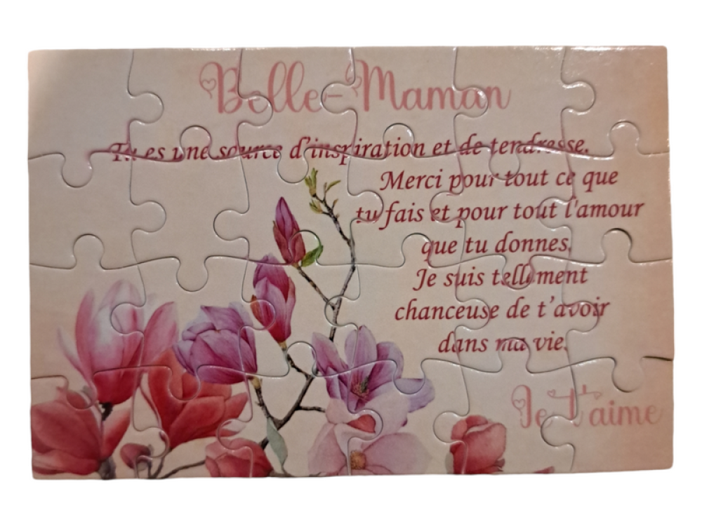 Puzzle "chère belle-maman" - 24 pièces avec pochon - Belle-maman- Surprise - Anniversaire - Fête des mères- Noel - Cadeau Belle maman