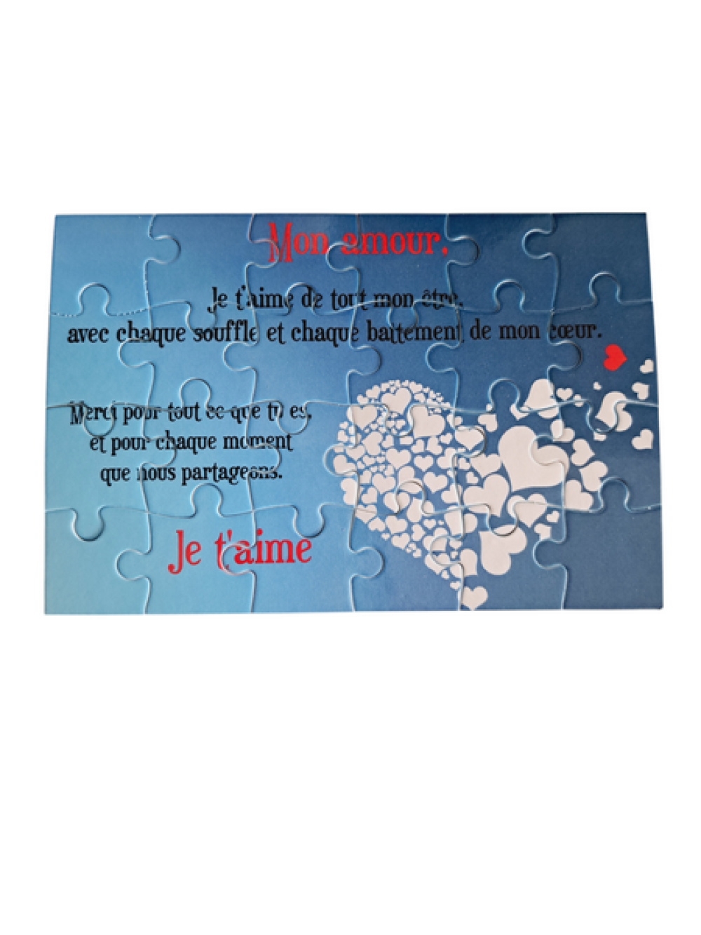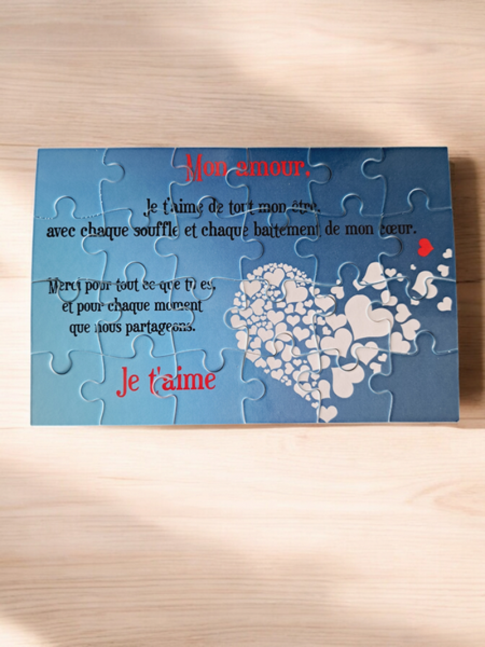 Puzzle personnalisé "Je t'aime' - 24 pièces avec pochon inclus