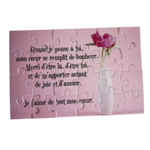 Exprimez vos sentiments avec un puzzle personnalisé unique pour l'être aimé ! Ce puzzle de 16,5 cm x 11 cm, composé de 24 pièces, cache un message d'amour à découvrir pièce par pièce. Livré dans un élégant pochon, il est prêt à être offert pour un moment de tendresse inoubliable. Une attention délicate et originale qui fait battre le cœur."