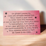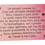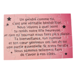 Ce puzzle personnalisé de 16,5 x 11 cm est une belle manière de montrer votre attachement pour votre gendre. Avec un joli texte qui exprime votre reconnaissance, ce cadeau est un symbole des liens familiaux et des moments partagés. Un souvenir à construire, parfait pour rappeler des sentiments sincères.