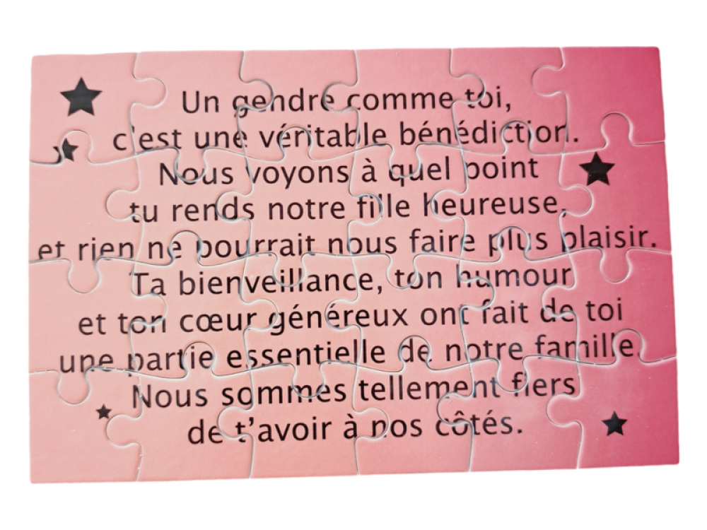 Puzzle "cher gendre" - 24 pièces avec pochon - gendre - surprise - anniversaire - cadeau gendre  - noel Ajout au panier