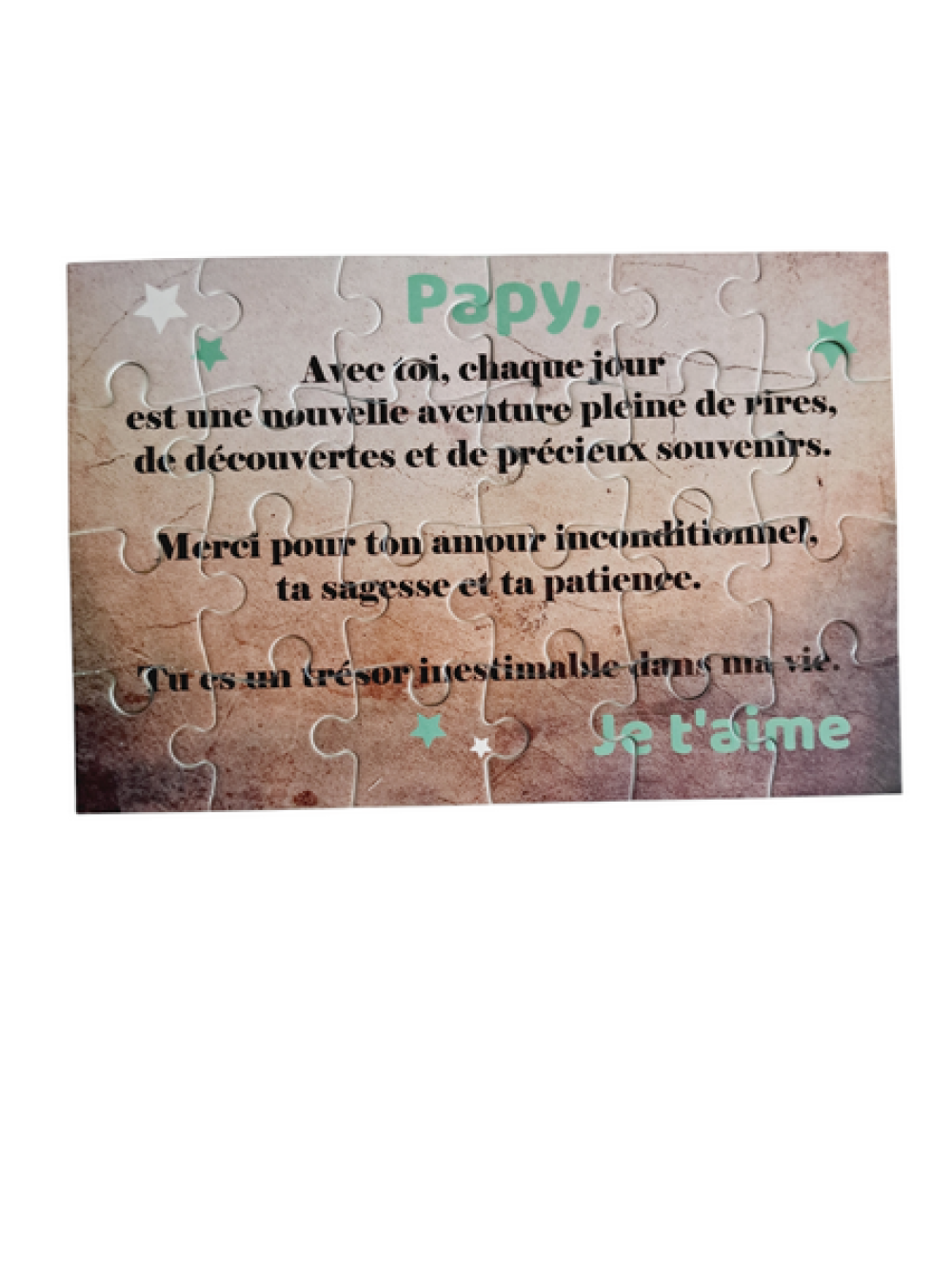 Puzzle "Papy" - 24 pièces avec pochon - Papy - Surprise - Anniversaire - Noel - Cadeau papy