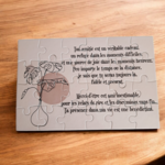 Un cadeau unique pour un(e) ami(e) précieux(se) ! Ce puzzle de 24 pièces (16,5 cm x 11 cm), personnalisé avec un joli texte, est l’attention parfaite pour exprimer votre affection. Un cadeau original et plein de sens, idéal pour partager de beaux souvenirs et renforcer ce lien spécial qui vous unit. Offrez un moment de complicité et de tendresse avec ce puzzle unique, créé spécialement pour votre ami(e)