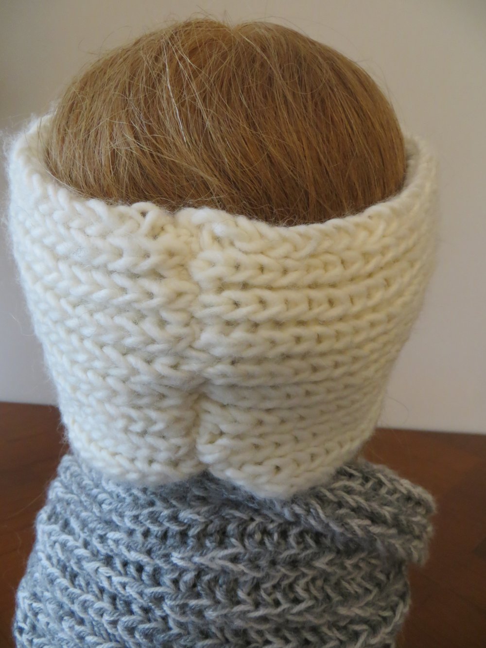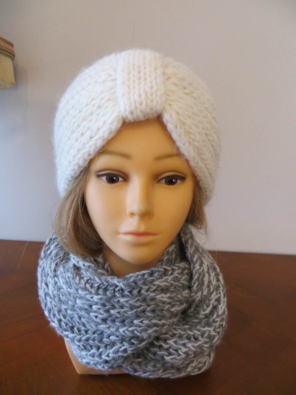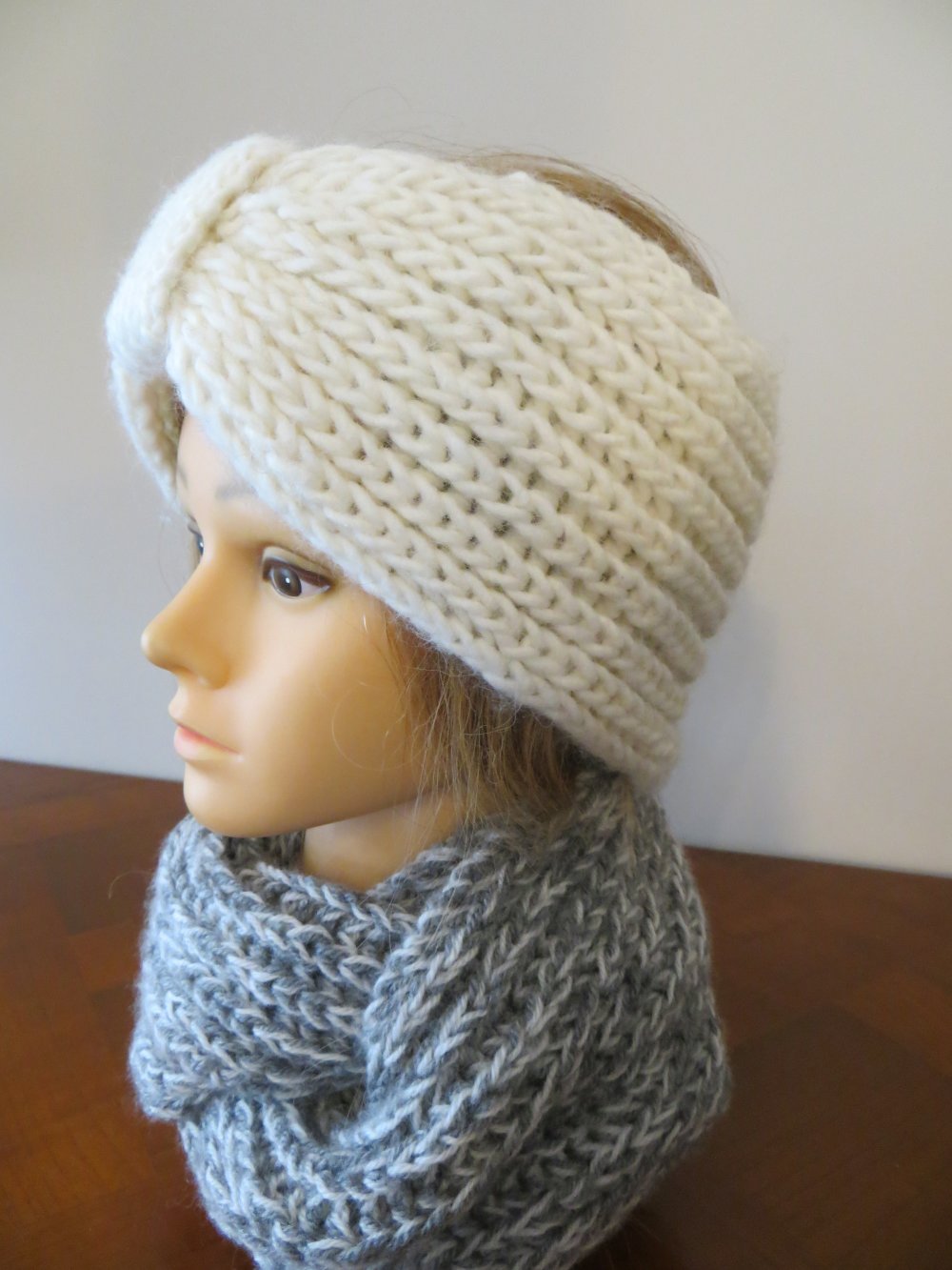 Bandeau /Headband tricoté main en laine Suyana de Katia.blanc cassé ..