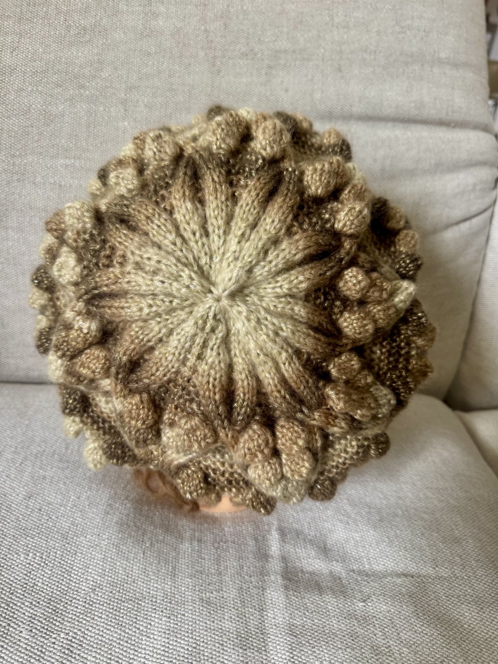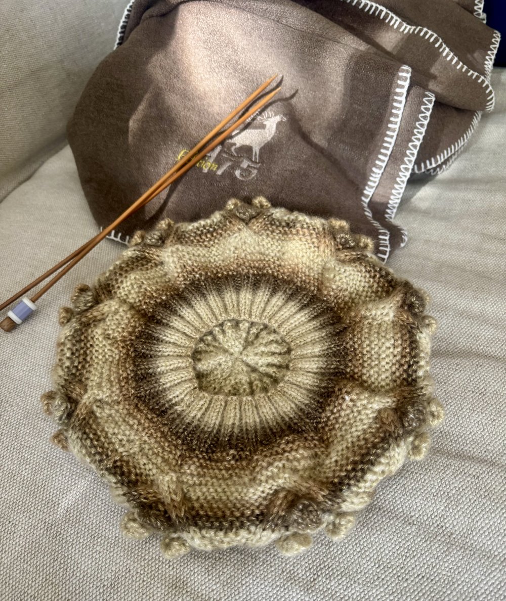 Création personnelle soignée très originale par son jeu de points ( Torsades, Noppes, Mousse )