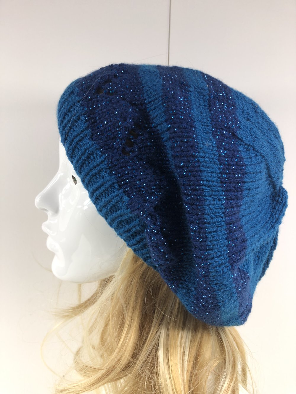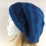 Béret Laine Tricoté Main Réf 6182 Qualité Acrylique Couleur Rayures Bleu Taille Unique Modèle Unique
