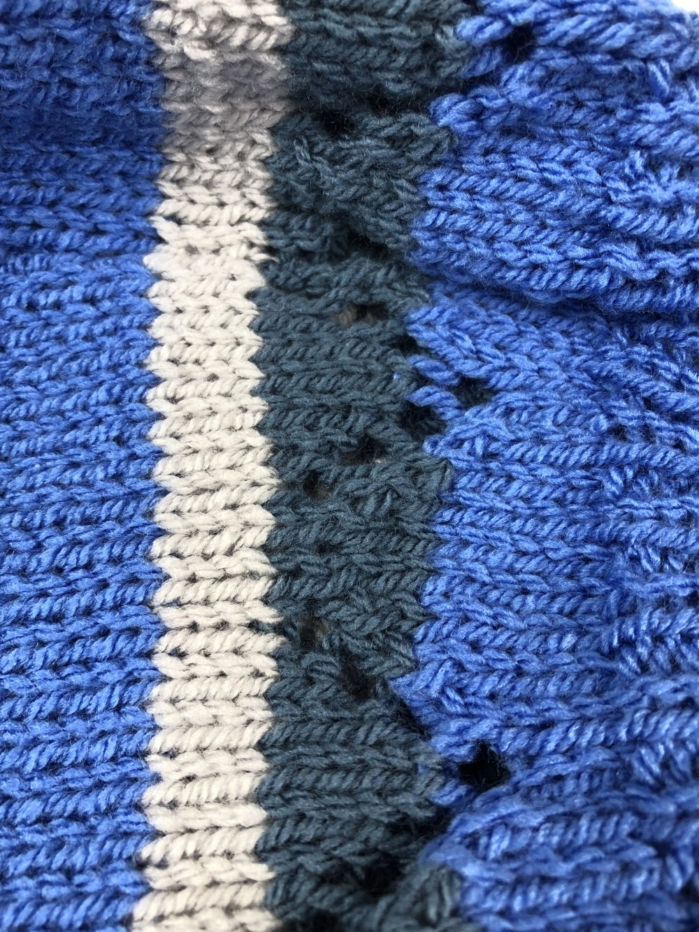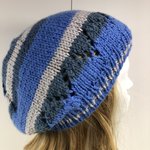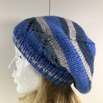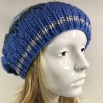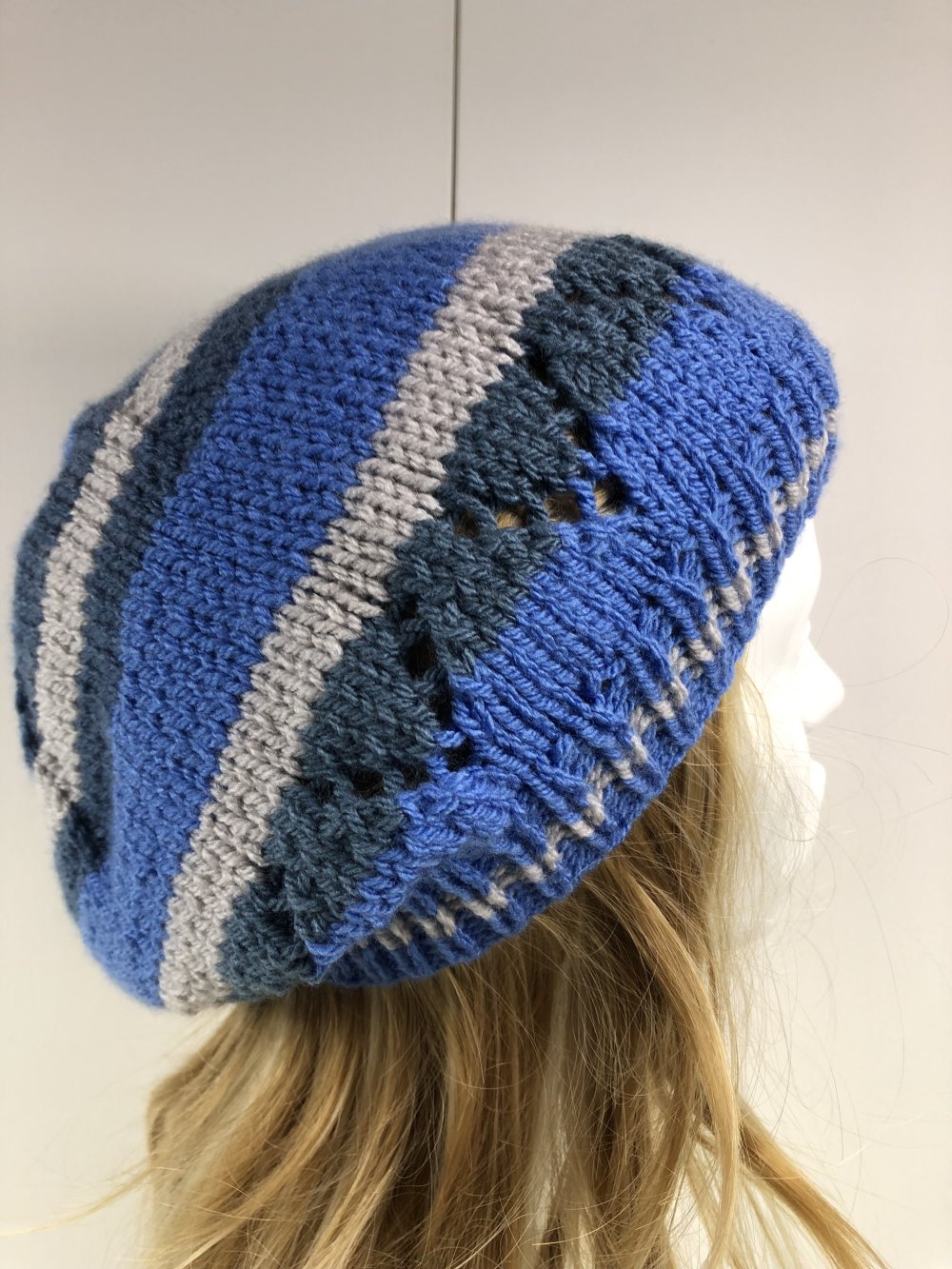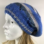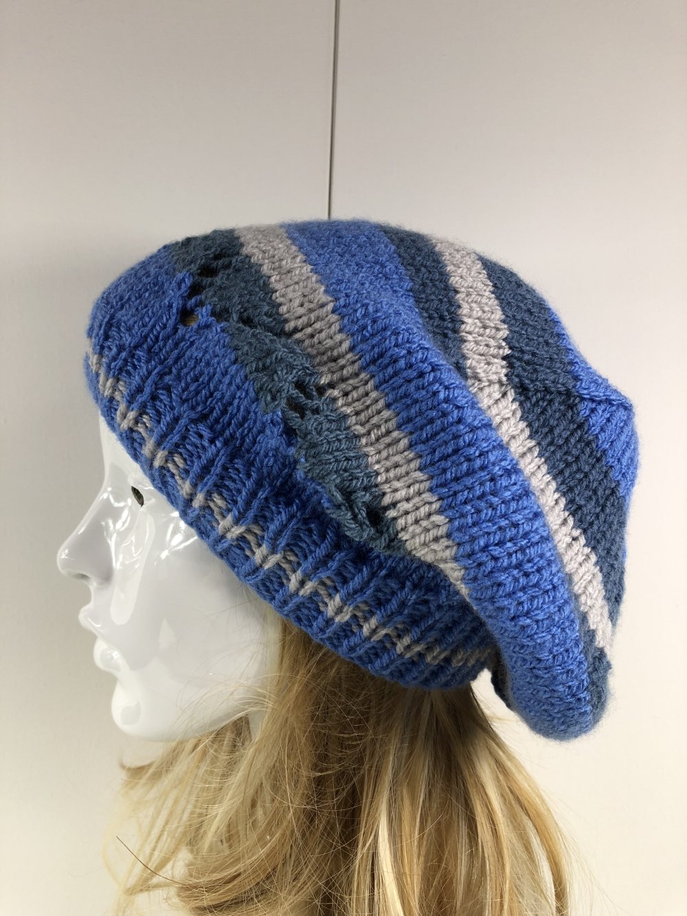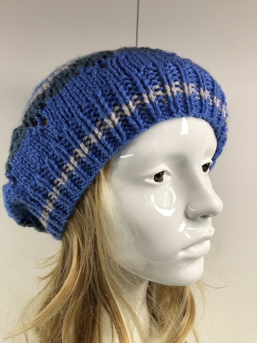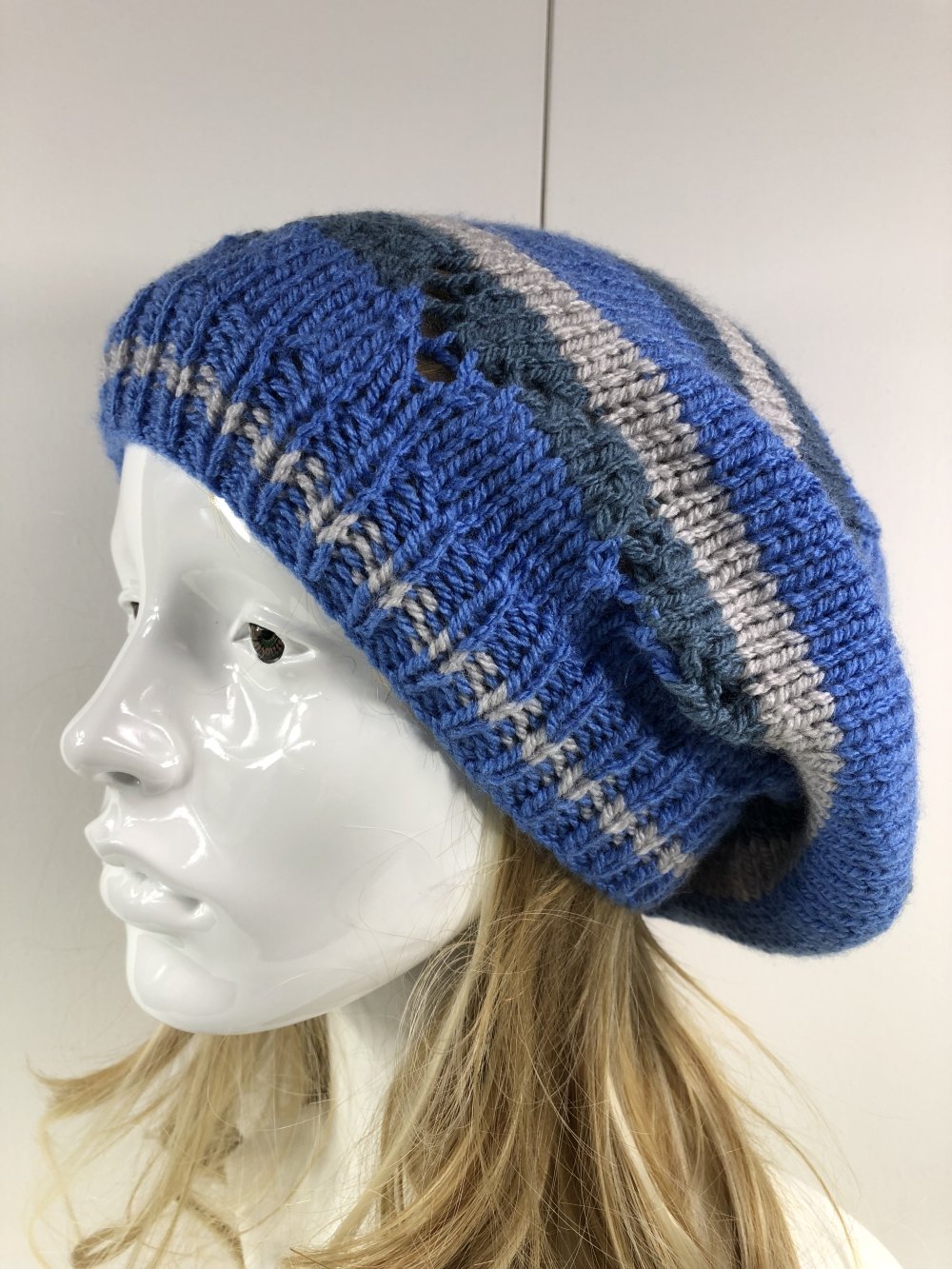 Béret Laine Tricoté Main Réf 6348 Qualité Acrylique Couleur Rayures Bleu Taille Unique Modèle Unique