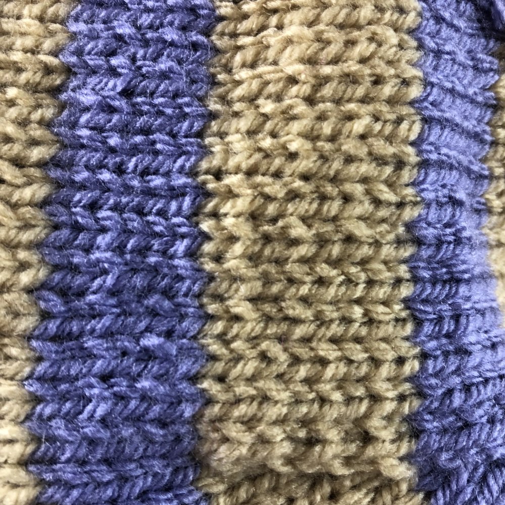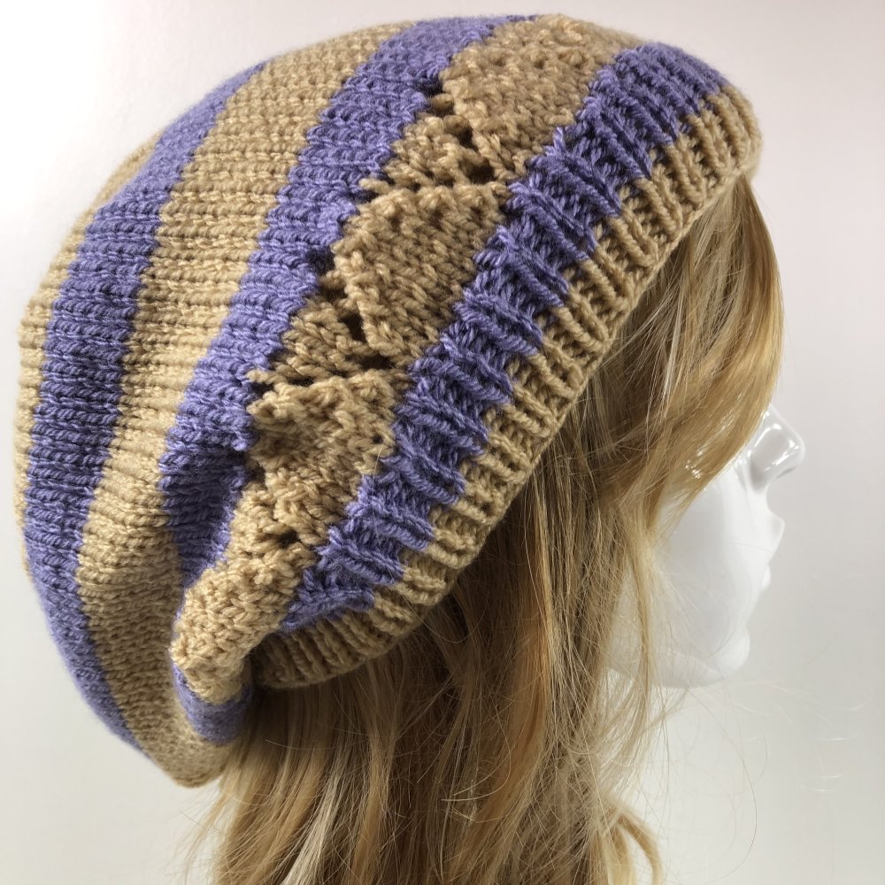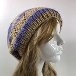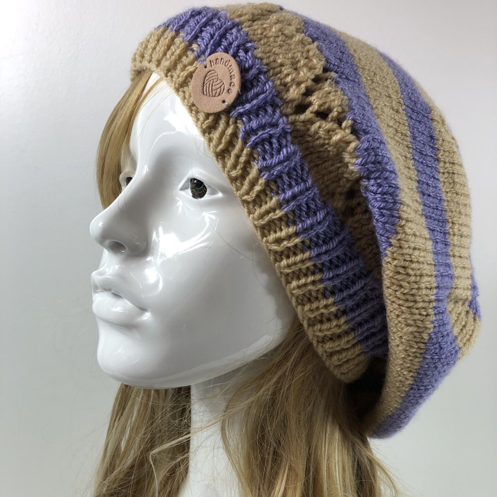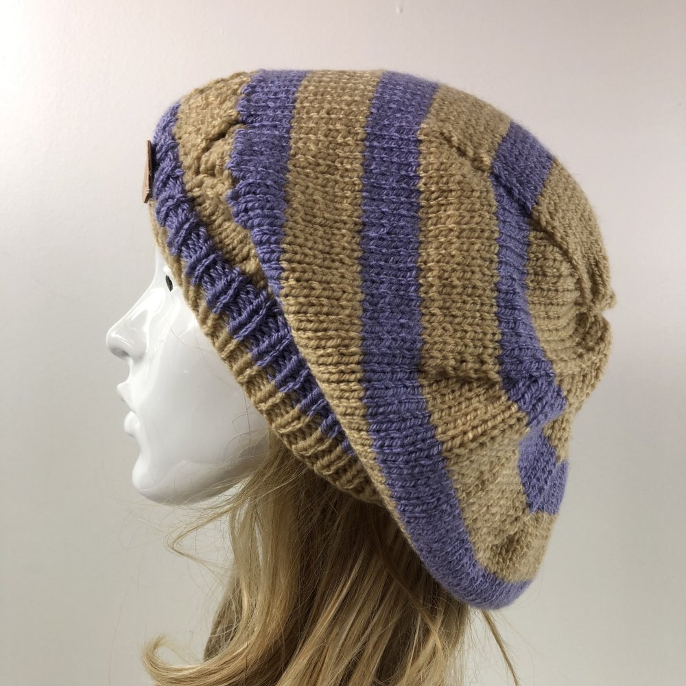 Béret Laine Tricoté Main Réf 7418 Qualité Acrylique Couleur Rayures Beige /Parme Taille Unique Modèle Unique