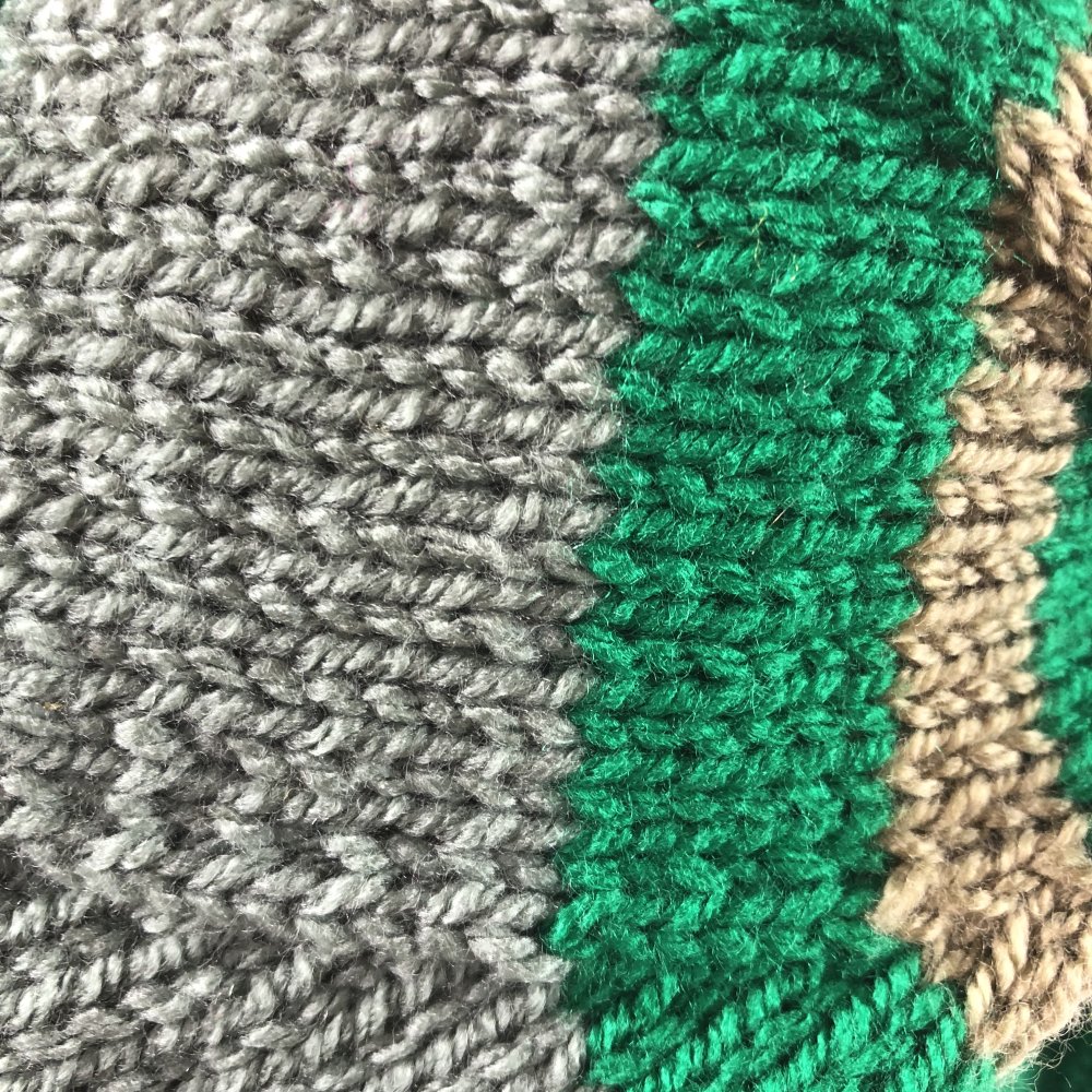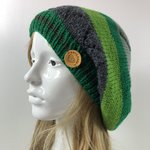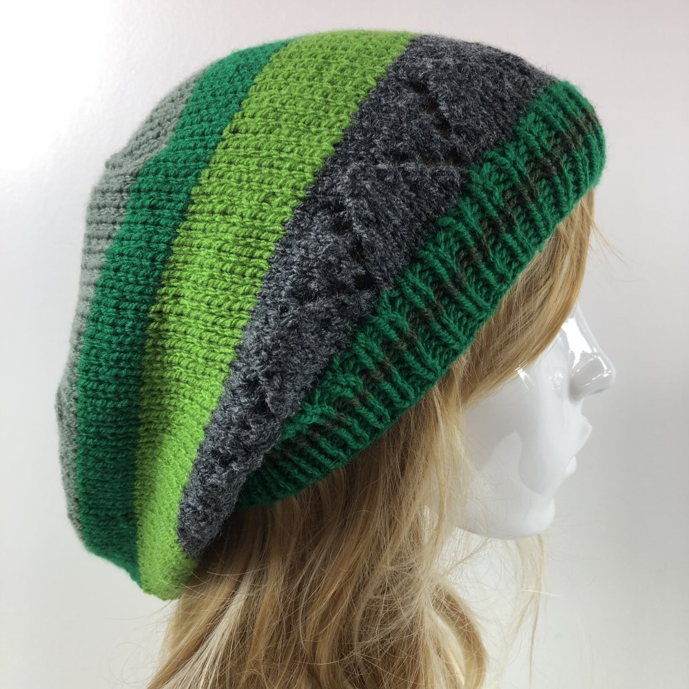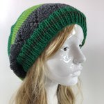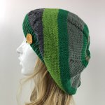 Béret Laine Tricoté Main Réf 7428 Qualité Acrylique Taille Unique Couleur Rayures Vert/Gris Modèle Unique
