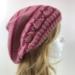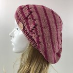 Béret Laine Tricoté Main Réf 7494 Qualité Acrylique Couleur Rayures Saumon/Rose Taille Unique Modèle Unique