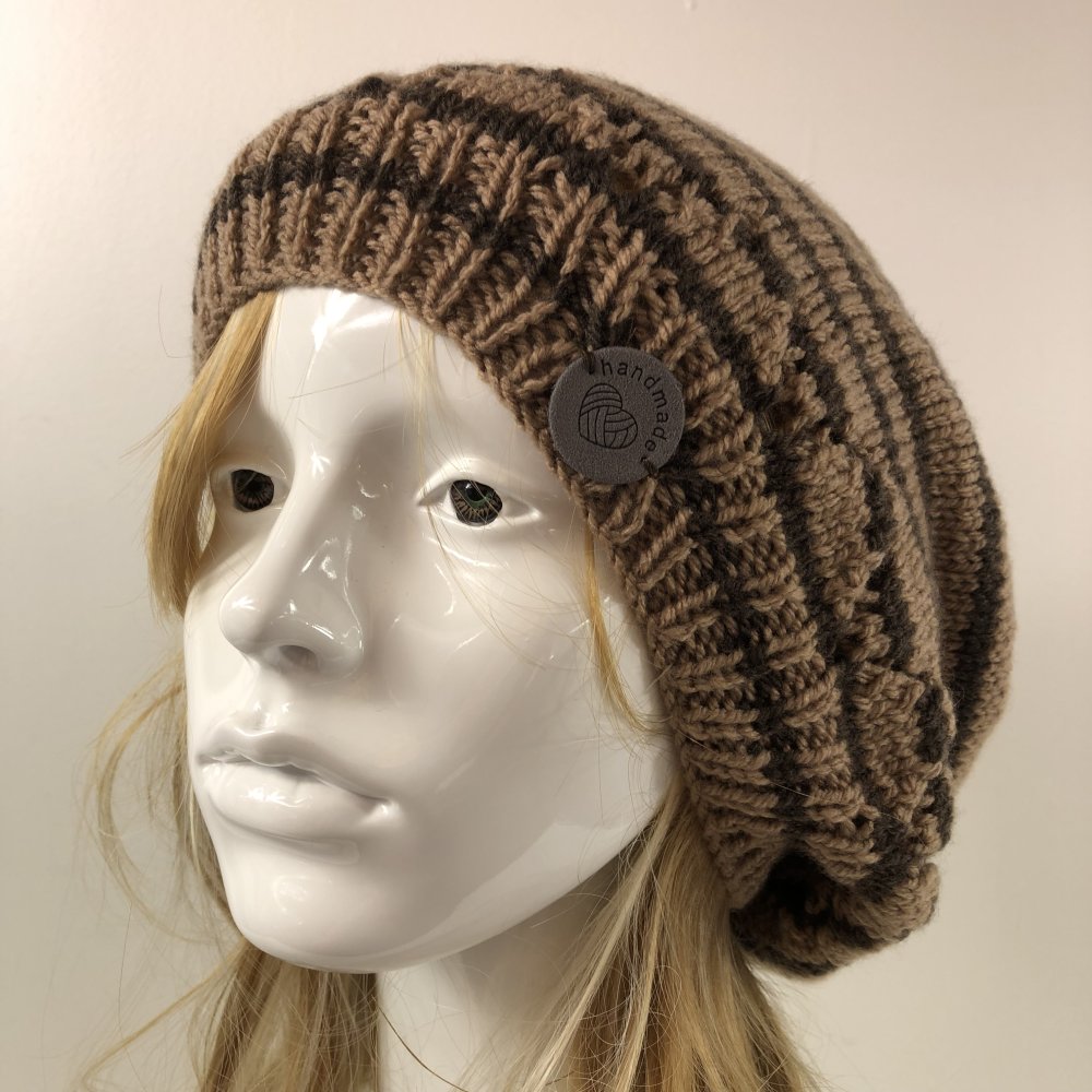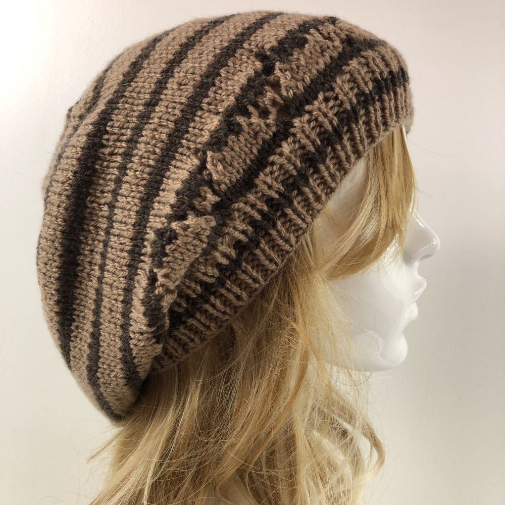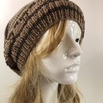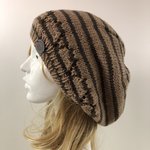 Béret Laine Tricoté Main Réf 7554 Qualité Acrylique Couleur Rayures Beige/Marron Taille Unique Modèle Unique