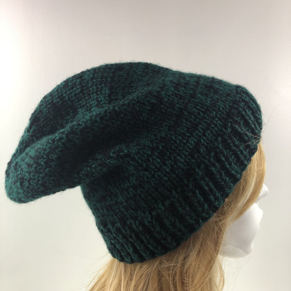 Bonnet Laine Tricoté Main Réf 2625 Qualité Acrylique Couleur Chiné Vert/Noir Taille Unique Modèle Unique