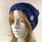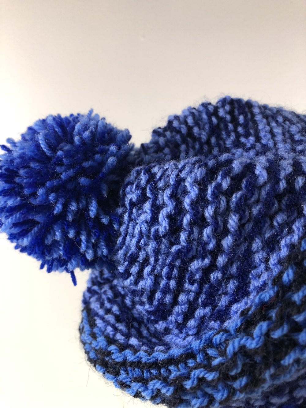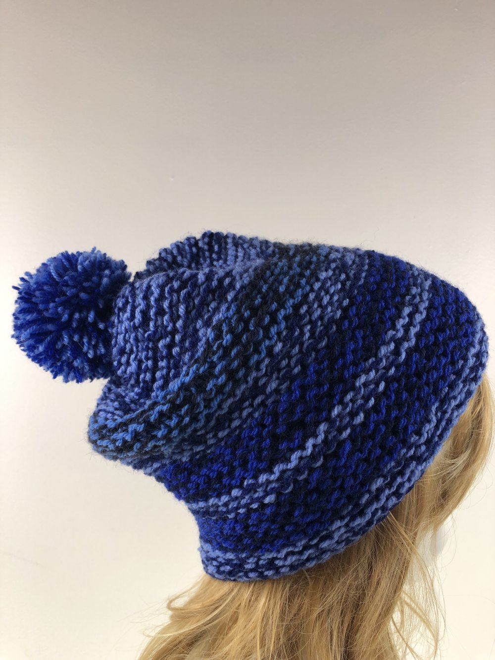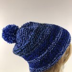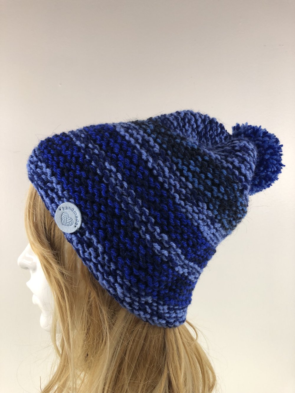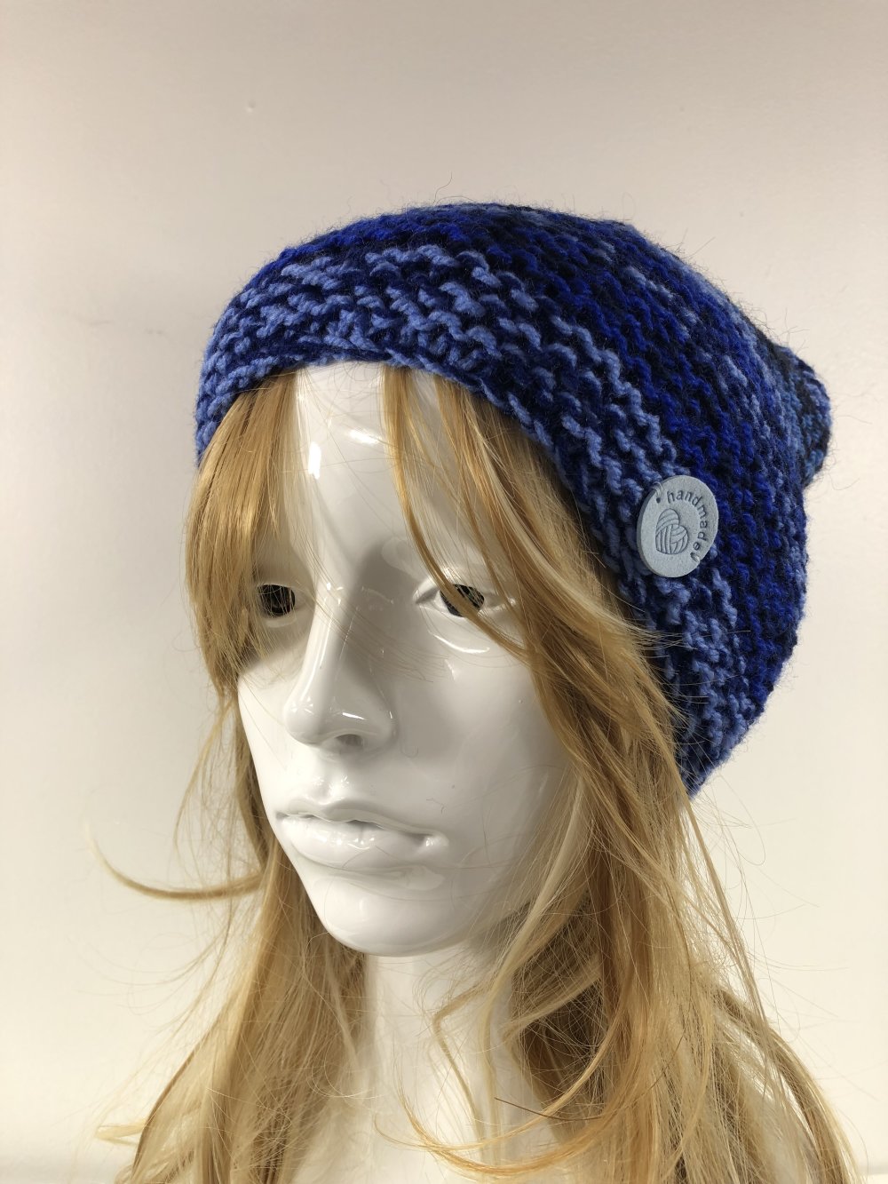 Bonnet Laine Tricoté Main Réf 3556 Qualité Acrylique/Laine Couleur Rayures Chiné Bleu Taille Unique Modèle Unique