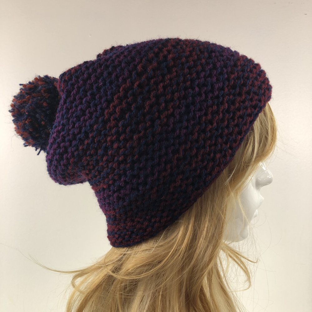 Bonnet Laine Tricoté Main Réf 3581 Qualité Acrylique /Laine Couleur Chiné Marine /Bordeaux Taille Unique Modèle Unique