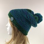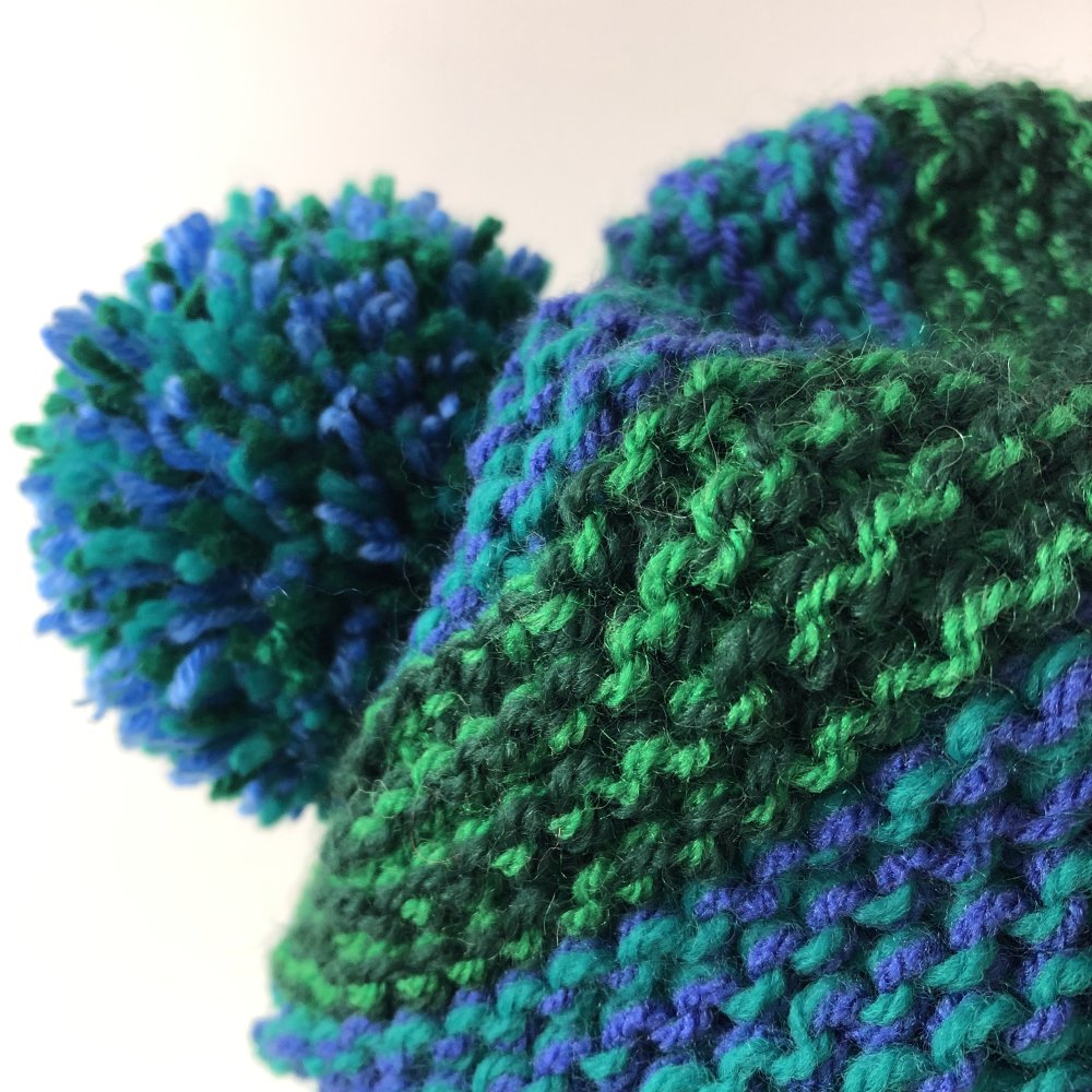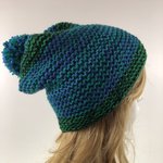 Bonnet Laine Tricoté Main Ref 3585 Qualité Acrylique/Laine Couleur Chiné Vert/Bleu Taille Unique Modèle Unique